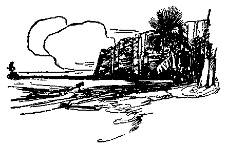 A thin strip of shadow huddled close to a pile of pearl shell at the end of the wharf, and I doubled myself up and attempted to sleep. But hardwood planks don't make an ideal resting place. Besides, the rays of sun followed the strip of shadow around the pile, and each time I slipped into a doze I would be pricked into wakefulness. At last, maddened by the biting rays, I collected half a dozen copra bags, splintered a piece of kauri pine, and after rigging up one bag as an awning, I spread the others on the planks and fell asleep.