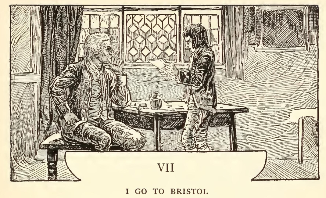 Well, mother was upstairs with father and I was laying the breakfast-table against the captain’s return when the parlour door opened and a man stepped in on whom I had never set my eyes before. He was a pale, tallowy creature, wanting two fingers of the left hand, and though he wore a cutlass, he did not look much like a fighter. I had always my eye open for seafaring men, with one leg or two, and I remember this one puzzled me. He was not sailorly, and yet he had a smack of the sea about him too.