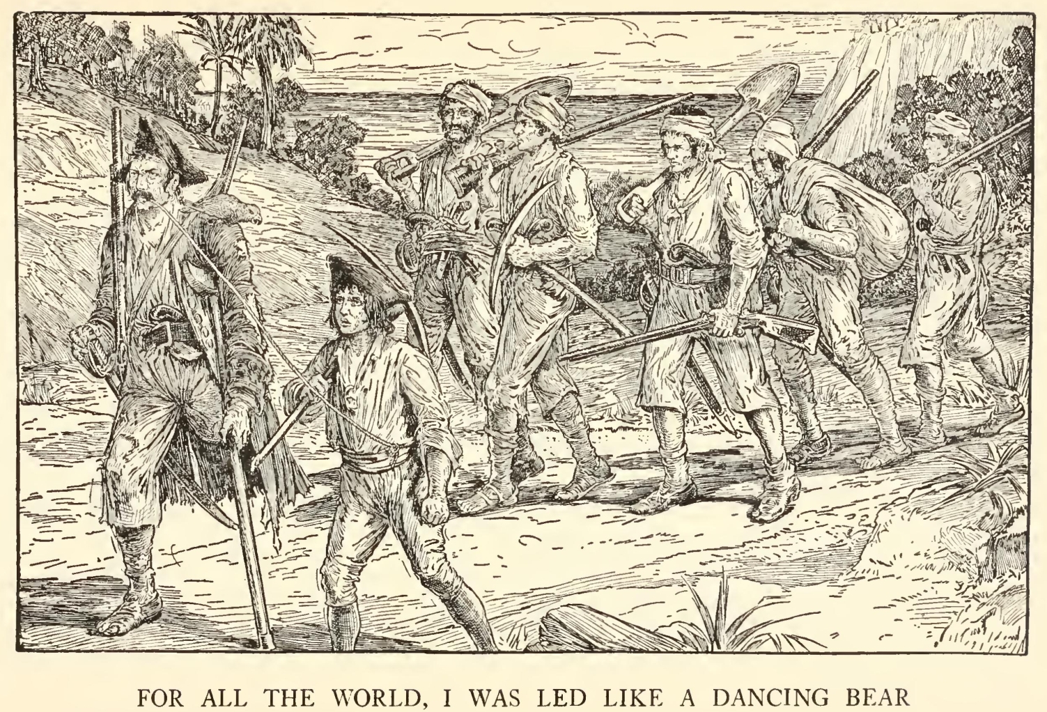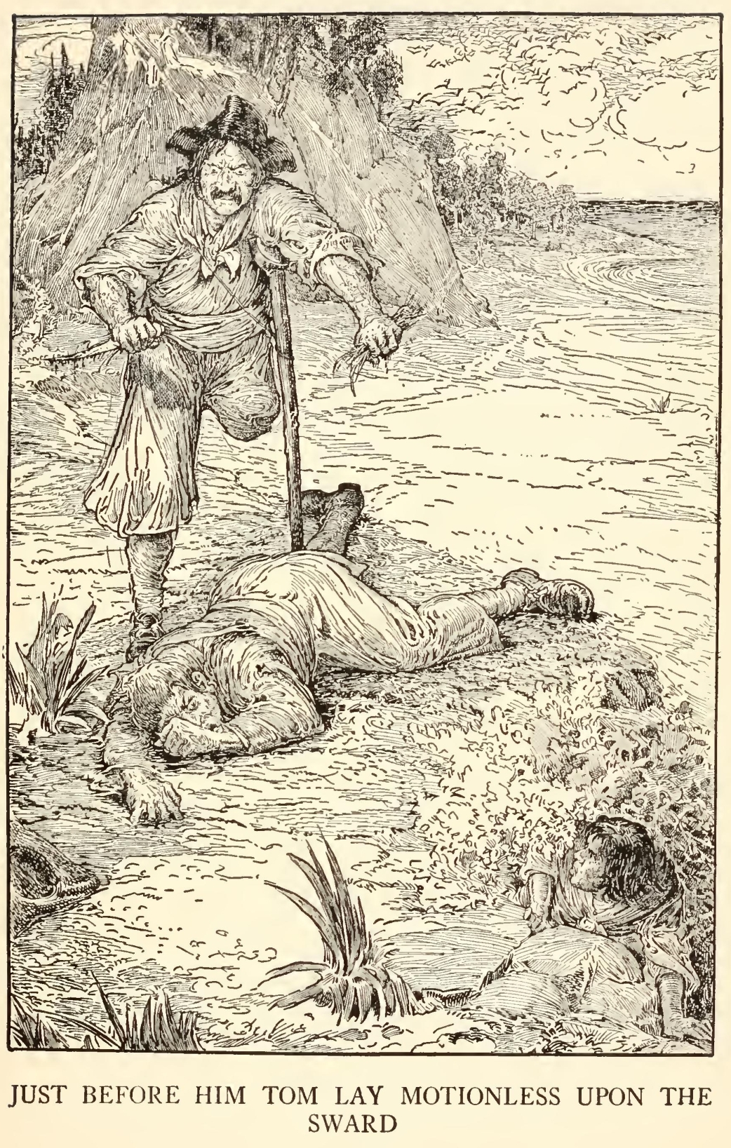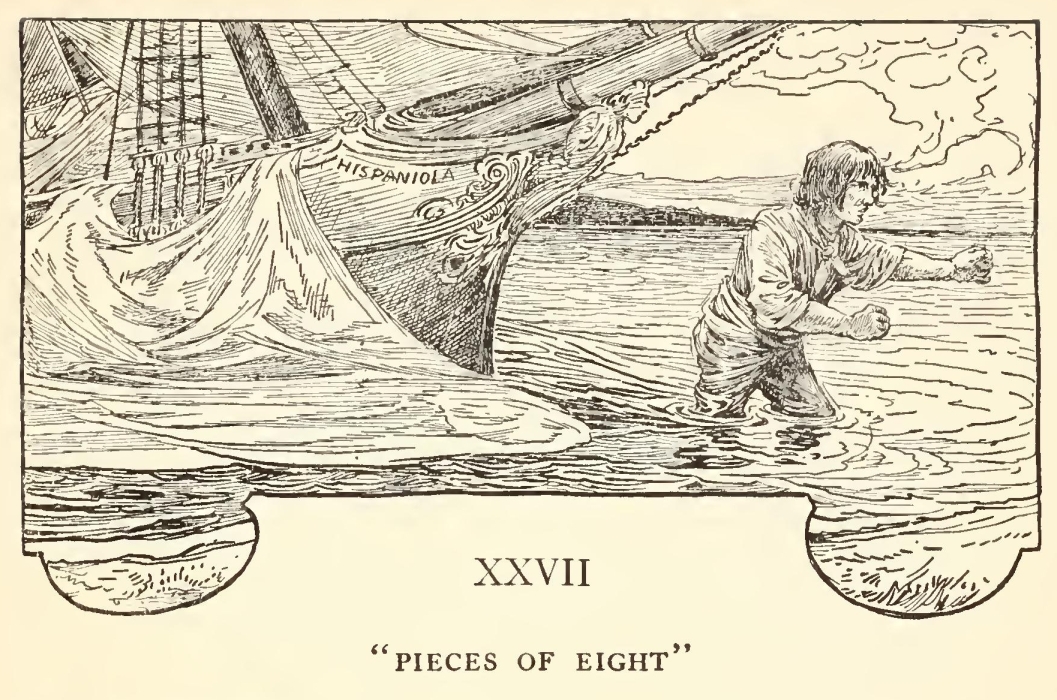 How that personage haunted my dreams, I need scarcely tell you. On stormy nights, when the wind shook the four corners of the house and the surf roared along the cove and up the cliffs, I would see him in a thousand forms, and with a thousand diabolical expressions. Now the leg would be cut off at the knee, now at the hip; now he was a monstrous kind of a creature who had never had but the one leg, and that in the middle of his body. To see him leap and run and pursue me over hedge and ditch was the worst of nightmares. And altogether I paid pretty dear for my monthly fourpenny piece, in the shape of these abominable fancies.