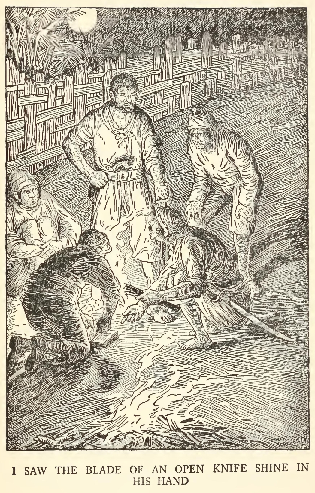 The old fellow’s fury was awful. He sprang to his feet, drew and opened a sailor’s clasp-knife, and balancing it open on the palm of his hand, threatened to pin the doctor to the wall.