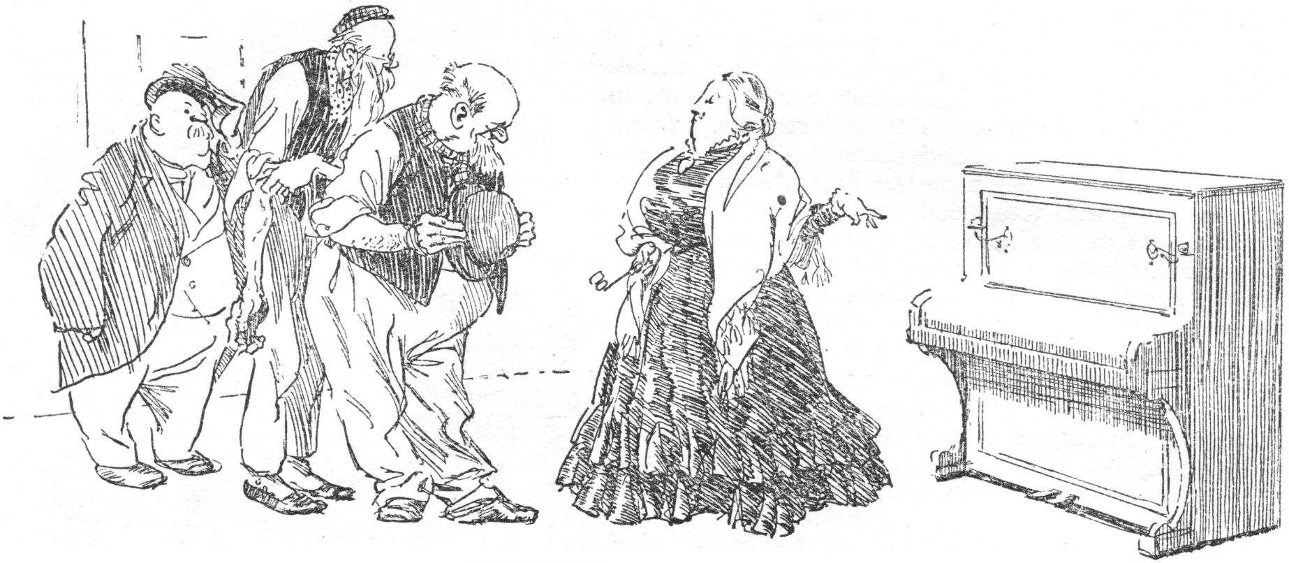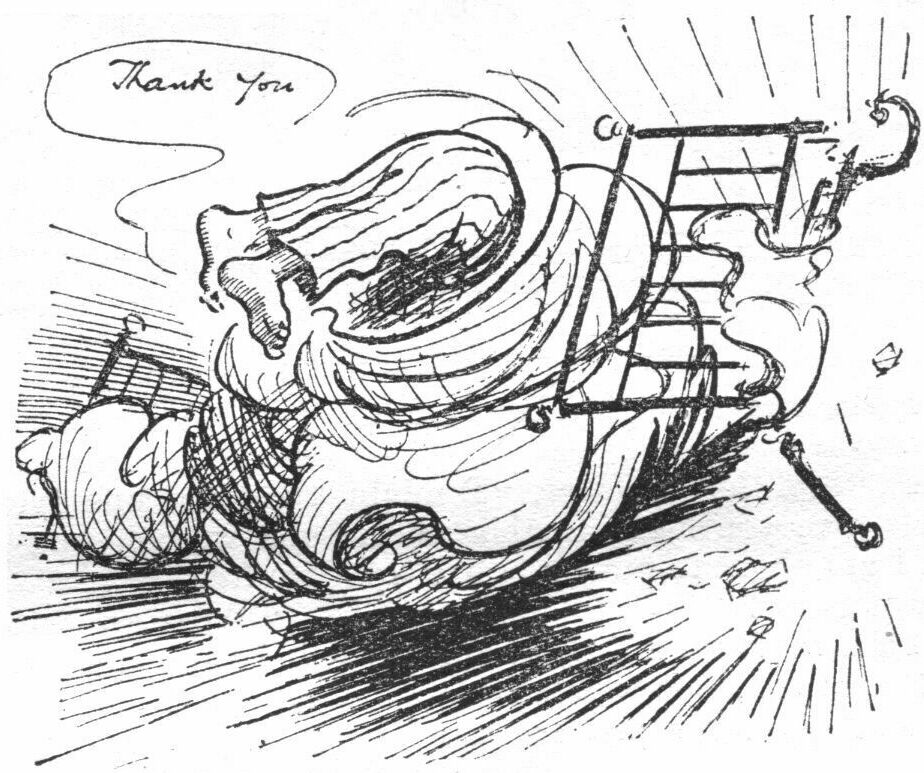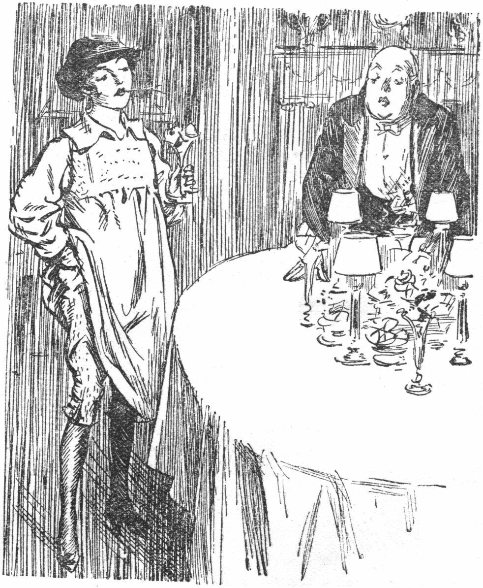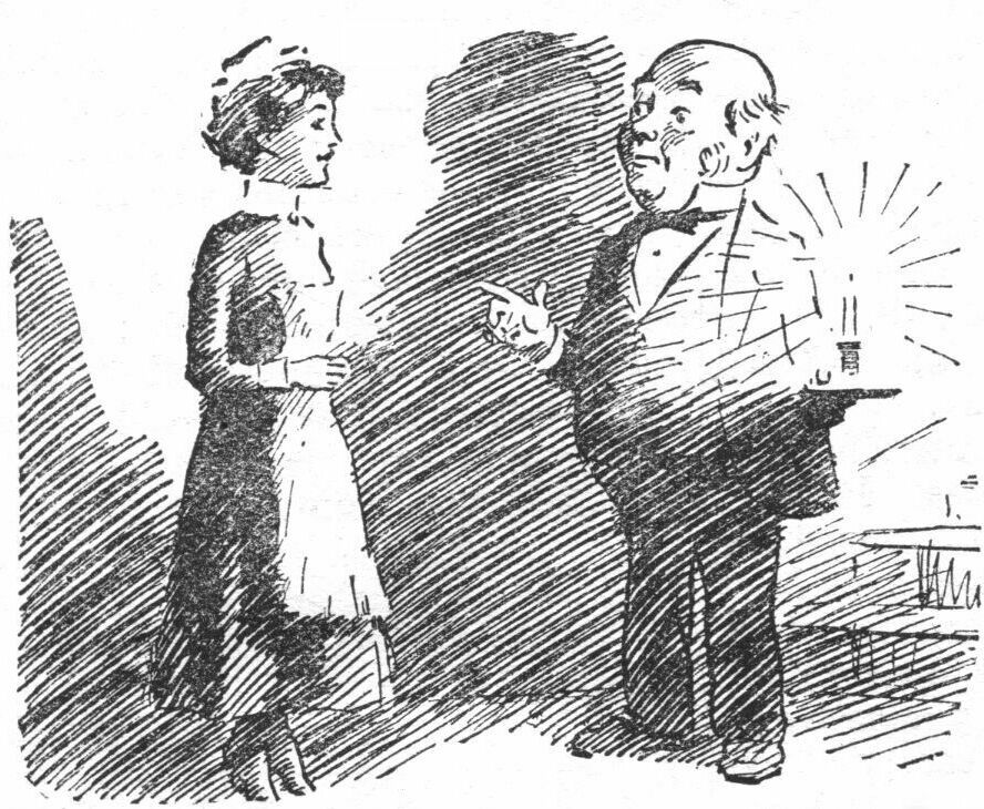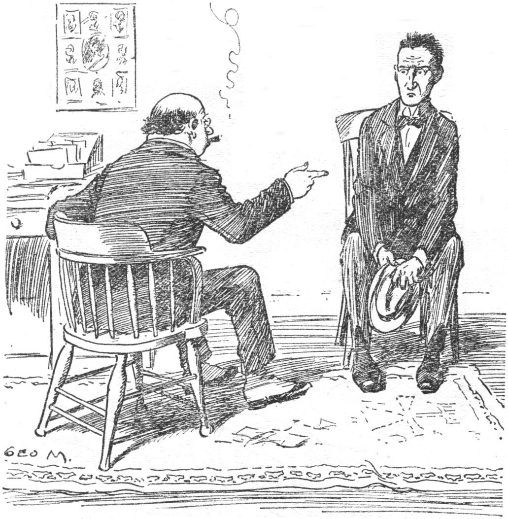 "Good," said the producer. "You see, the picture opens with Bill Bloodred, the champion prize-fighter, demanding certain documents from his aged uncle. As the latter won't surrender the papers. Bill gives him a swinging blow to the jaw, a few more heavy ones to various other parts of the body, and then proceeds to kick the old man to death as the latter lies helpless on the floor. It's one of those thrilling scenes the juveniles like so much! Then you come in and tackle Bill."