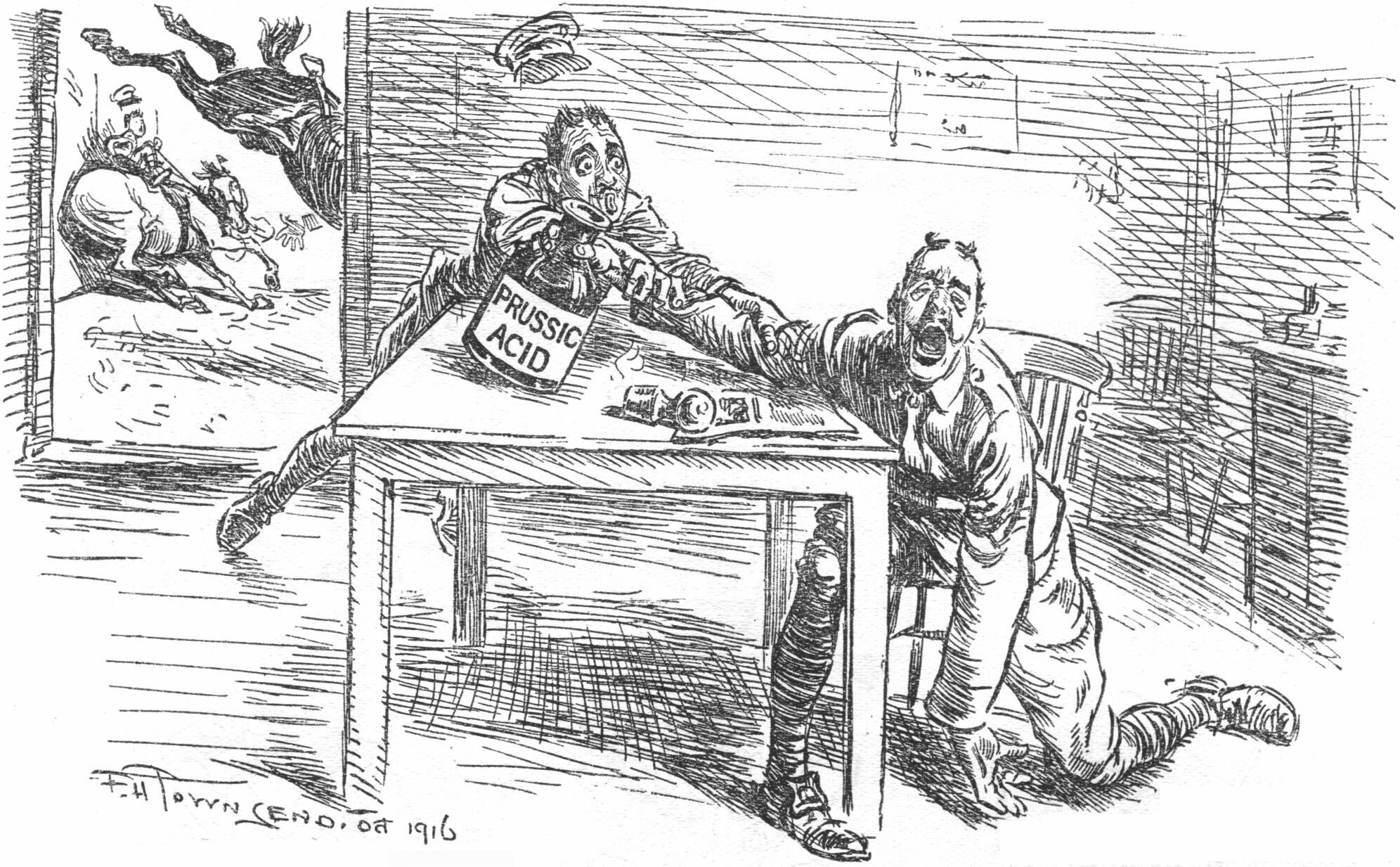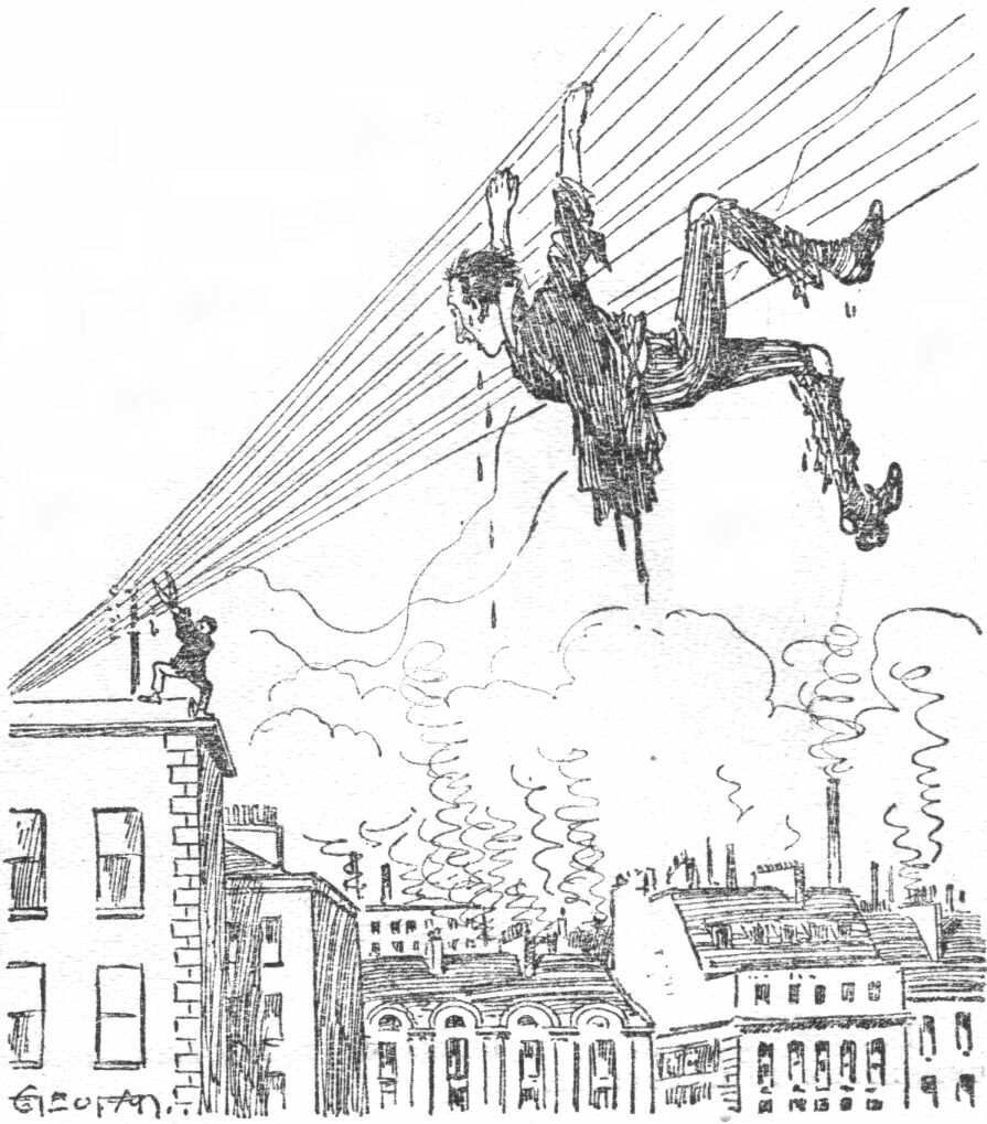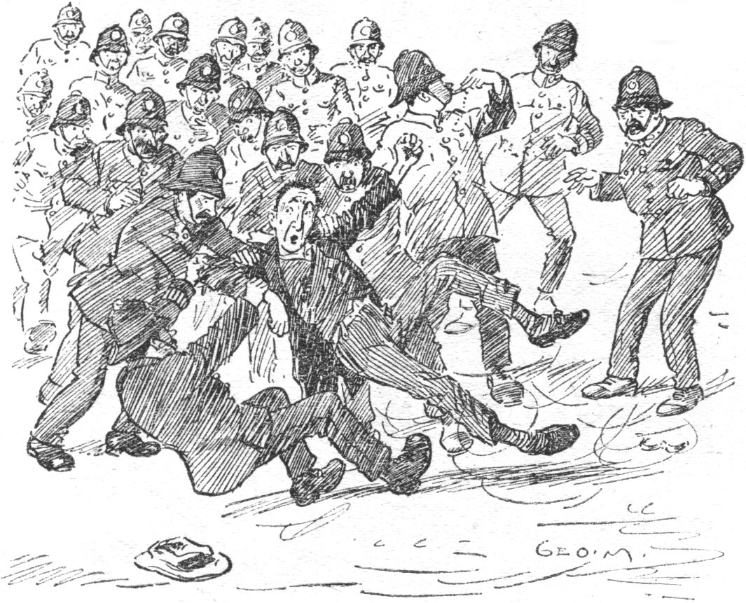 "Now Bill goes straight away to the police office and states that you have murdered his uncle. When you come to, you are surrounded by about twenty members of the police force, the chief of whom slips the handcuffs over your wrists. With one wrench you snap the chain and are free!"