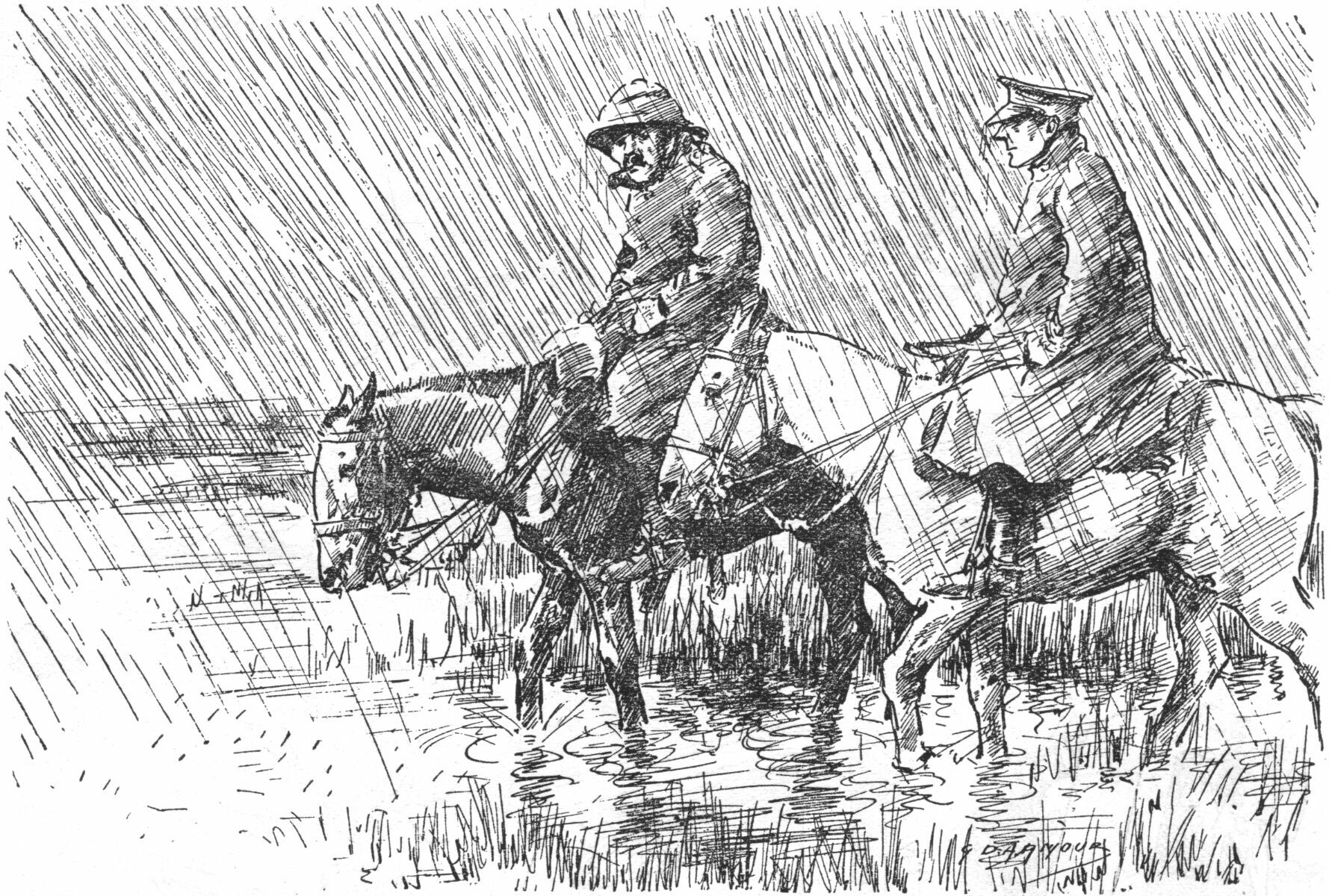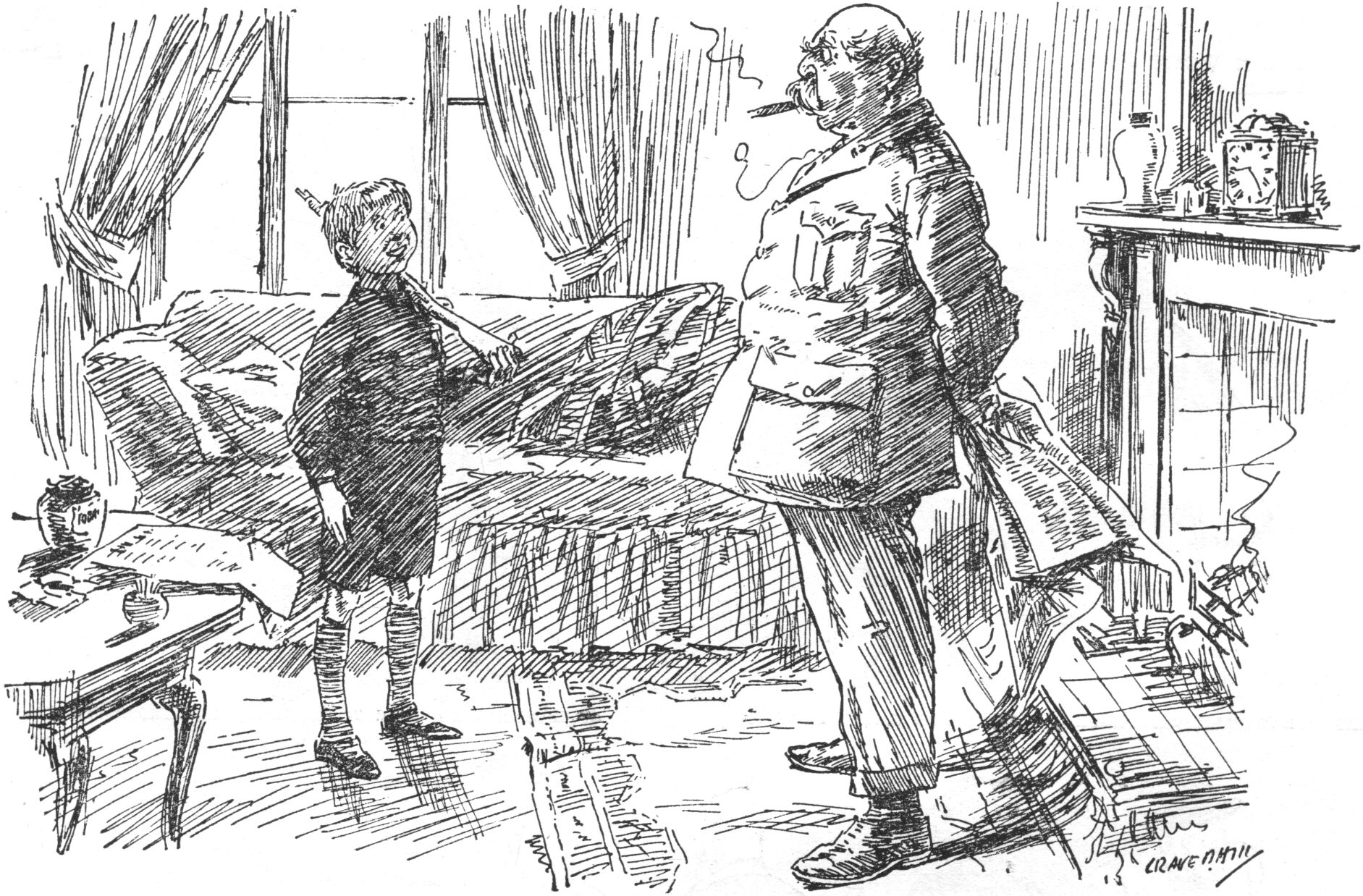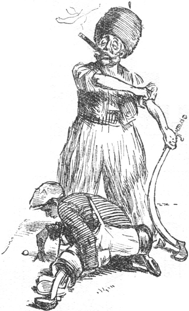 "THAT JOKE OF MINE, YOU KNOW—WHEN I ASK A RECRUIT WHO'S BEEN THROWN, 'WHO THE DEVIL ASKED YOU TO DISMOUNT, SIR?' WELL, HERE'S ONE OF THE PAPERS SAYS IT'S THE OLDEST WHEEZE IN THE WORLD!"