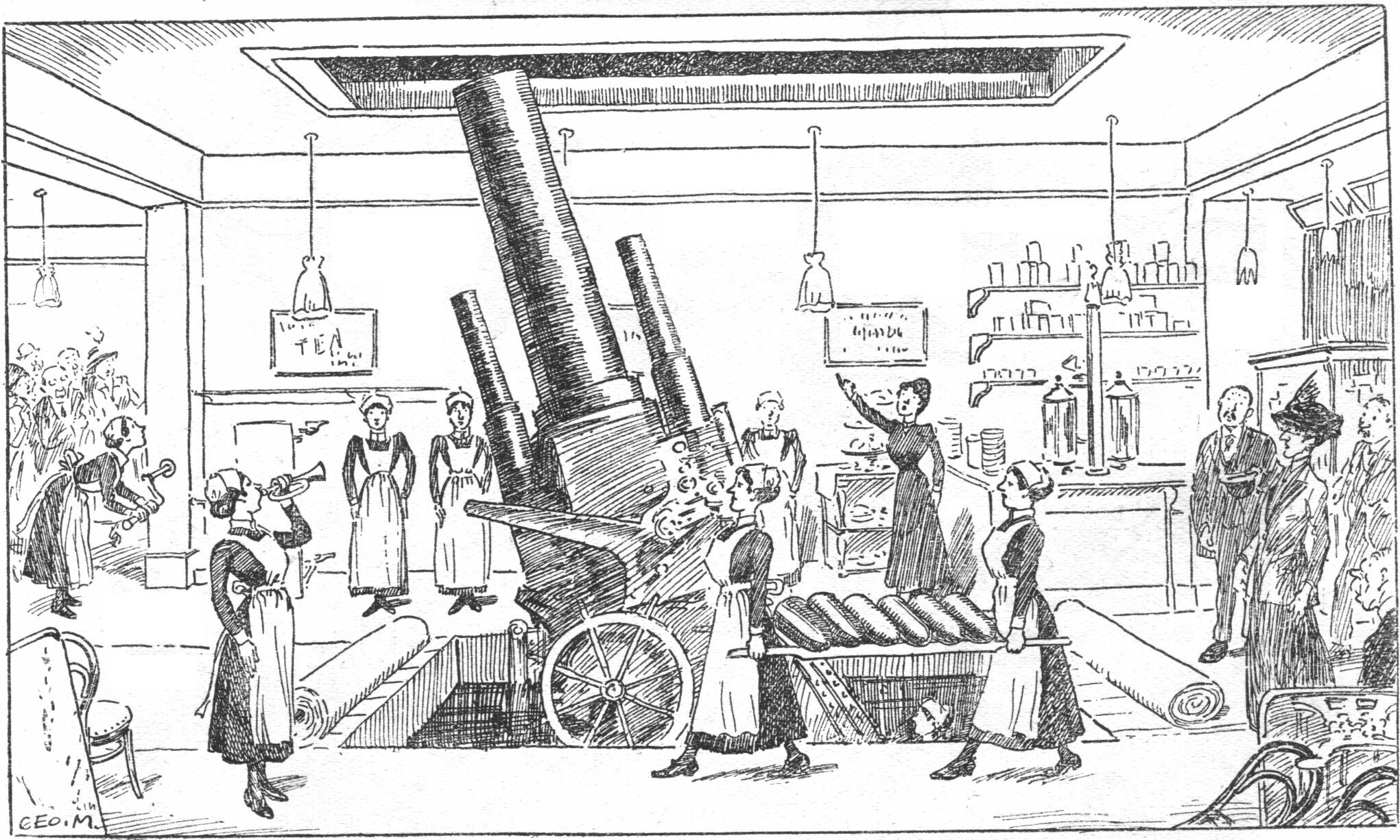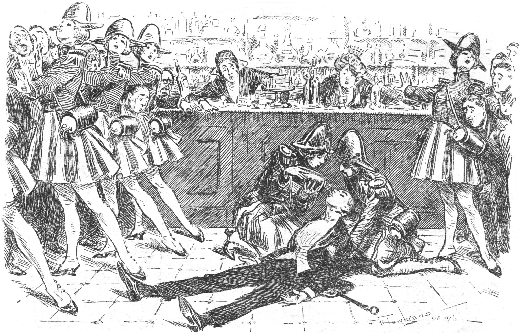 WHY NOT V.A.D. SECTION OF VIVANDIÈRES AT OUR THEATRE-BARS? WHY NOT V.A.D. SECTION OF VIVANDIÈRES AT OUR THEATRE-BARS TO RENDER FIRST AID TO ANY RECKLESS YOUTH WHO HAS THE TEMERITY TO TAKE A THEATER WHISKY?