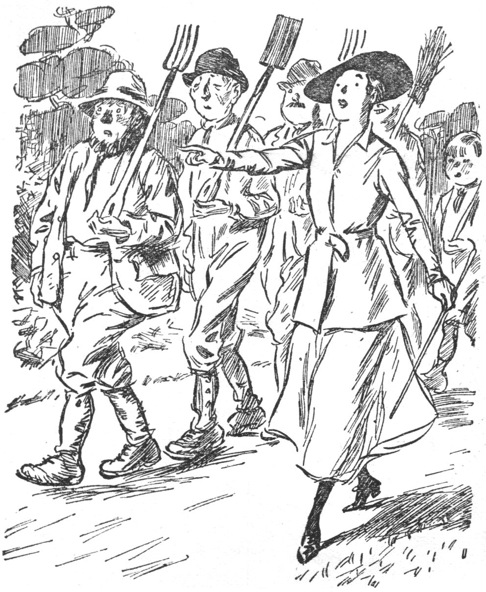 LADY GREEN-PARKER.LADY GREEN-PARKER (LATE PLATOON-COMMANDER IN A WOMAN'S VOLUNTEER CORPS) STARTS HER GARDENERS AT WORK FOR THE DAY.