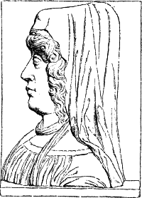 In der kurzen Zeit des Friedens und äußeren Gedeihens der süditalienischen Provinzen unter der Herrschaft Friedrichs II. brachten die Cosmaten aus Rom ein neues Element in die Dekoration. Aus dergleichen Zeit oder wenig später sind aber auch einige Stücke großer Plastik erhalten: verschiedene Porträtbüsten, die sich bisher schwer in Zusammenhang mit der übrigen Entwickelung der Plastik in Süditalien bringen ließen. Zwar scheinen die Büsten im Museum zu Capua vielmehr Arbeiten aus der letzten Verfallzeit römischer Kunst zu sein; aber es bleiben als zweifellose Arbeiten dieser Zeit ein paar Frauenbüsten, die der Sigilgaïta Rufolo an der Kanzel im Dom zu Ravello und zwei verwandte, aber flüchtiger behandelte Reliefköpfe an derselben Kanzel (vom Jahre 1272), sowie die aus der unmittelbaren Nachbarschaft von Ravello stammende Büste einer jungen Fürstin in Berlin (No. 28). Beide Büsten, obgleich unter sich nicht unwesentlich verschieden, stimmen in dem Streben [8]nach möglichstem Anschluß an spätrömische Arbeiten, selbst in der technischen Behandlung überein. Bei der Vereinzelung dieser Bildwerke liegt es näher, dieselben auf Einflüsse der Kunst der Pisaner Meister (s. S. 16) zurückzuführen, als umgekehrt daraus auf Süditalien als die Heimat der Kunst des Niccolo Pisano zu schließen. Wie roh die große Plastik in Süditalien damals noch war, dafür giebt die Statue Karls von Anjou, die jetzt an der Treppe des Conservatorenpalastes zu Rom steht, augenfälligen Beweis.