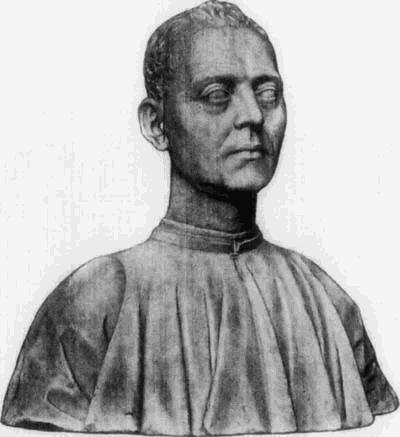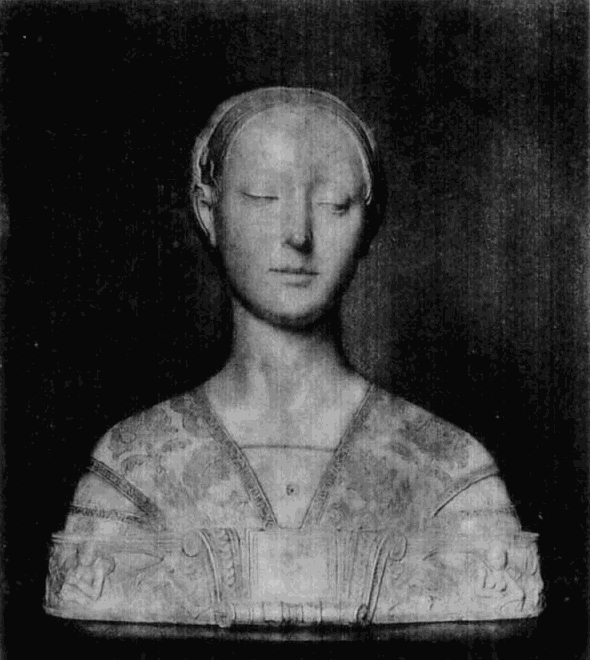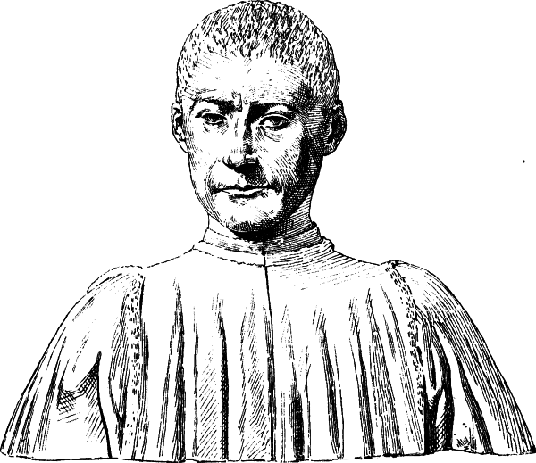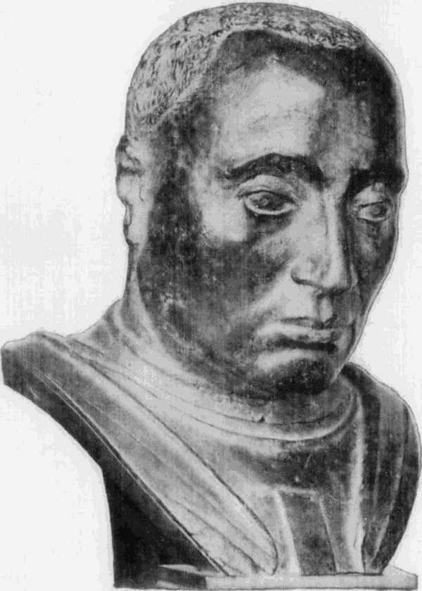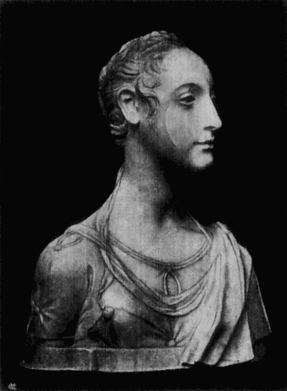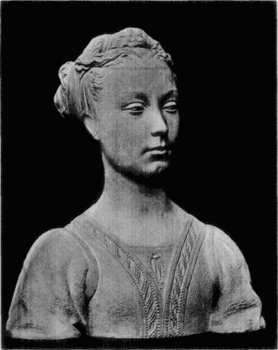 Die bevorzugte Art der plastischen Porträtdarstellung ist die Büste, die sonst im Quattrocento für die Wiedergabe von Heiligen oder Idealfiguren nur ausnahmsweise gewählt wird. In Florenz, das auch hier vorangeht und die glänzendste und mannigfaltigste Entwickelung zeigt, wurde die Wiedergabe der hervorragenderen Mitglieder der vornehmen Familien in Büsten aus Marmor oder bemaltem Thon mehr und mehr die Regel. Um dieselben in weitere Kreise zu verbreiten, benutzen die Künstler auch hier das Mittel der Stucknachbildungen, welche sie in ihren Werkstätten anfertigen und bemalen ließen. Beispiele dafür sind in der Berliner Sammlung u. a. die Büste des Lorenzo Magnifico (No. 148) und des angeblichen Macchiavelli (No. 147, Marmor-Original im Bargello).