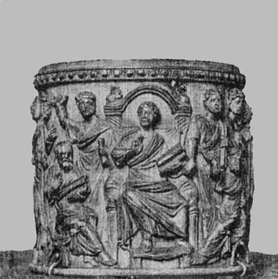 Das Auftreten und der schließliche Sieg des Christentums, welches die alte Welt zertrümmerte und eine neue Kultur an seine Stelle setzte, hat zur Belebung der Kunst zunächst nicht beigetragen. Die künstlerische Schöpfungskraft war im weströmischen Reiche zur Zeit Konstantin’s schon völlig erloschen; die Kunst, zumal die bildnerische, die recht eigentlich die Kunst der Antike gewesen war, zehrte von Traditionen, welche mehr und mehr verblaßten; und in den immer roheren und empfindungsloseren, immer spärlicheren Nachbildungen verlor sich allmählich auch die handwerksmäßige Fertigkeit. Für den Bronzeguß fehlte es, von Werken der Kleinkunst abgesehen, an Ausdauer und technischem Können, für die Ausführung von Freifiguren überhaupt an künstlerischem Vermögen; die bildnerische Thätigkeit wurde daher bald auf das Relief beschränkt, und auch dieses wurde vorwiegend im Kleinen ausgeführt.