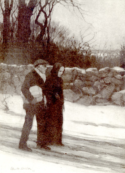 They were all as hysterical as a girls’ school during this annual celebration. But Father peeped out of the parlor window and saw the lush moonlight on marsh and field. To Mother, with an awed quiet, “Sarah, it’s moonlight, like it used to be—” The Tubbses seemed to understand that the sweethearts wanted to be alone, and they made excuses to be off to bed.[22] On the porch, wrapped in comforters and coats against the seaside chill, Father and Mother cuddled together. They said little—everything was said for them by the moonlight, silvery on the marshes, wistful silver among the dunes, while the surf was lulled and the whole spacious night seemed reverent with love. His hand cradled hers as the hand of a child would close round a lily leaf.