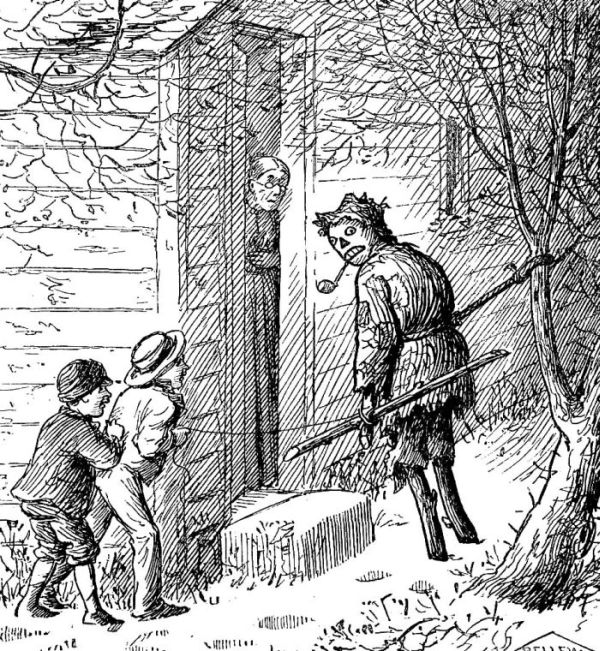 In vain he had asked every one to tell him where his foster-son Alec Deans lived. Meeting only laughter or rebuffs, he tried in the growing darkness to find his way back to Castle Garden, but could not. No one seemed to understand him, or cared to; so at last, worn out in mind and body, he sunk down on the stone steps of a house, unable to proceed a step further.