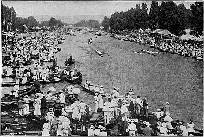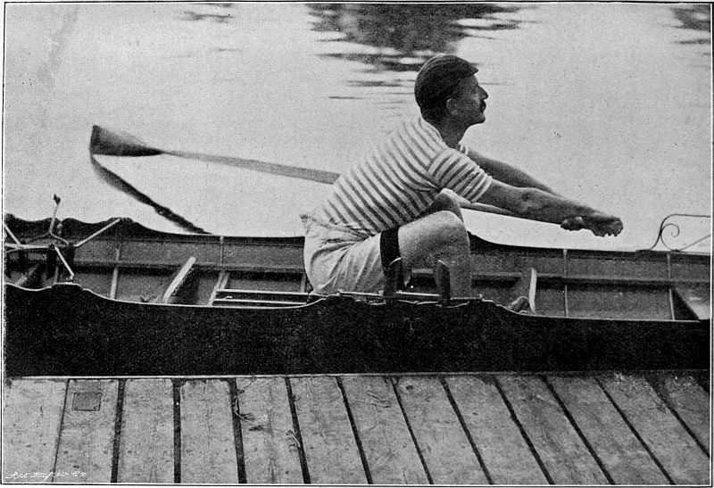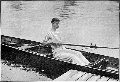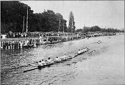 It has often been objected to rowing, either by those who have never rowed, or by those who having rowed have allowed themselves to sink prematurely into sloth and decay, that the sport in the case of most men can last only for a very few years, and that having warred, not without glory,[Pg 4] up to the age of about twenty-five, they must then hang their oars upon the wall and pass the remainder of their lives in an envious contemplation of the exploits of old but unwearied cricketers. Judging merely by my own personal experience, I am entitled to pronounce these lamentations baseless and misleading, for I have been able to row with pleasure even in racing boats during the whole period of nineteen years that has elapsed since I took my degree at Cambridge. But I can refer to higher examples, for I have seen the Grand Challenge Cup and the Stewards' Cup at Henley Regatta either rowed for with credit, or won by men whose age cannot have been far, if at all, short of forty years, and of men who won big races when they were thirty years old the examples are innumerable. But putting actual racing aside, there is in skilled rowing a peculiar pleasure (even though the craft rowed in be merely a fixed seat gig) which, as it seems to me, puts it on a higher plane than most other exercises. The watermanship which enables a party of veterans to steer their boat deftly in and out of a lock, to swing her easily along the reaches, while unskilled youths are toiling and panting[Pg 5] astern, is, after all, no mean accomplishment. And in recent years rowing has taken a leaf out of the book of cricket. Scattered up and down the banks of the Thames are many pleasant houses in which, during the summer, men who can row are favoured guests, either with a view to their forming crews to take part in local regattas, or merely for the purpose of pleasure-rowing in scenes remote from the dust and turmoil of the city. Let no one, therefore, be repelled from oarsmanship because he thinks that the sport will last him through only a few years of his life. If he marries and settles down and becomes a busy man, he will enjoy his holiday on the Thames fully as much as his cricketing brothers enjoy theirs on some country cricket field.