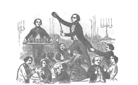 L’habitué de la maison, lui, se reconnaît aisément: il frappe et sachant ce qui doit se produire devant lui, il ne s’arrête pas, comme l’on dit, aux bagatelles de la porte; on ne lui a pas plus tôt ouvert que les quatre coups équi-distants se font entendre et annoncent son introduction.