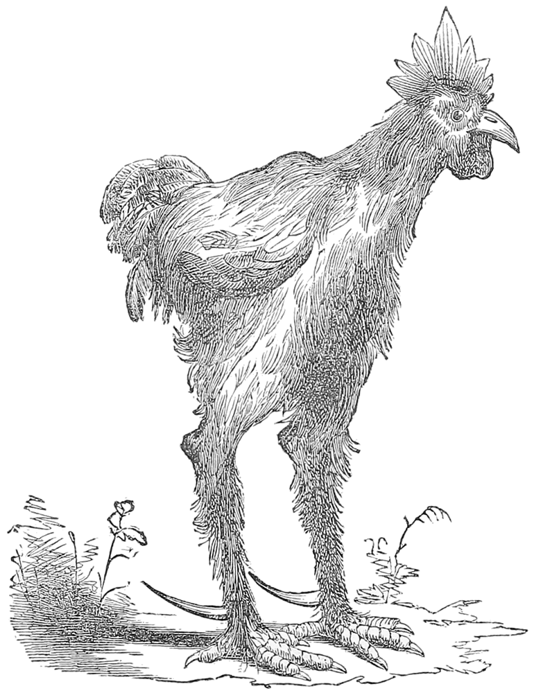 "O, all kinds—all kinds. The Chinese, and the Malays, and the Gypsies, and the Chittaprats, and the Wang Hongs, and the Yankee Games, and Bengallers, and Cropple-crowns, and Creepers, and Top-knots, and Gold Pheasants, and Buff Dorkings, and English Games, and Black Spanish and Bantams,—and I've several new breeds too, I have made myself, by crossing and mixing, in the last year, which beat the world for beauty and size, and excellence of quality."[Pg 11]