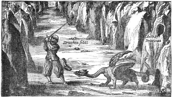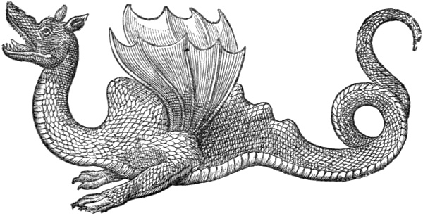 For me the major part of these creatures are not chimeras but objects of rational study. The dragon, in place of being a creature evolved out of the imagination of Aryan man by the contemplation of lightning flashing through the caverns which he tenanted, as is held by some mythologists, is an animal which once lived and dragged its ponderous coils, and perhaps flew; which devastated herds, and on occasions swallowed their shepherd; which, establishing its lair in some cavern overlooking the fertile plain, spread terror and destruction around, and, protected from assault by dread or superstitious feeling, may even have been subsidised by the[Pg 3] terror-stricken peasantry, who, failing the power to destroy it, may have preferred tethering offerings of cattle adjacent to its cavern to having it come down to seek supplies from amongst their midst.[1]