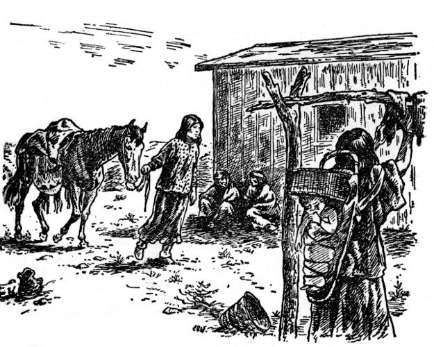 Delgadito owned many horses. Most of them grazed by day in pastures far from the village. But his black war stallion, his nimble-footed gray hunting horse, and the mare that his wife rode were only absent from their picket ropes when a rider was using them.