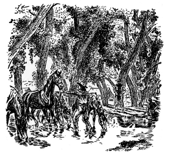 After twenty minutes the Indian boy looked down on the secluded swale where the duel would be fought. He and Ponce had chosen a battle ground far enough from the village so that the elders would be unlikely to interfere. Young Ponce was waiting there with one of his father's best horses, a fiery bay that had already slain a half dozen rivals.