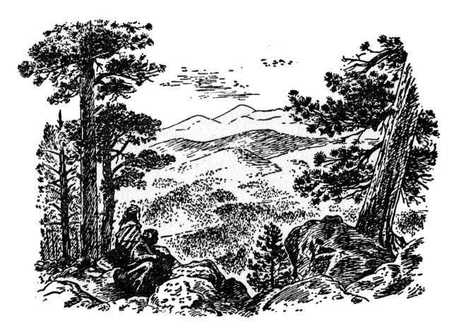 Beyond were more hills, the near ones low, rocky, and given more to shrubs and grass than to trees. Geronimo's eyes strayed across the Arizona landscape to the east. There lay No-doyohn Canyon, where Geronimo had been born in 1829, just twelve years earlier. There his father had died when Geronimo was five years old. In the far distance beyond the canyon, tall, pine-clad mountains rose.