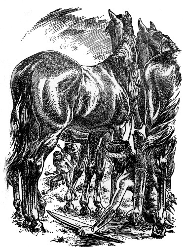Though the elders knew nothing of the duel, a crowd of boys ringed the chosen arena. They were tense with excitement, but they did not yell and shout as white boys would have. And all stood far enough away so that they could escape if either stallion charged toward them.