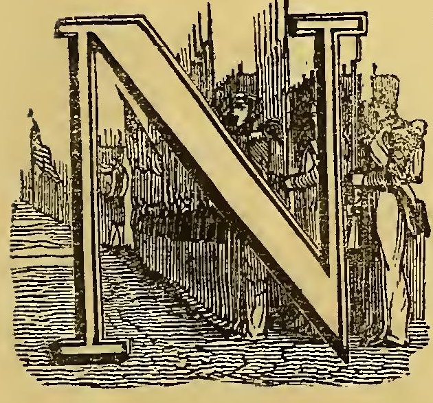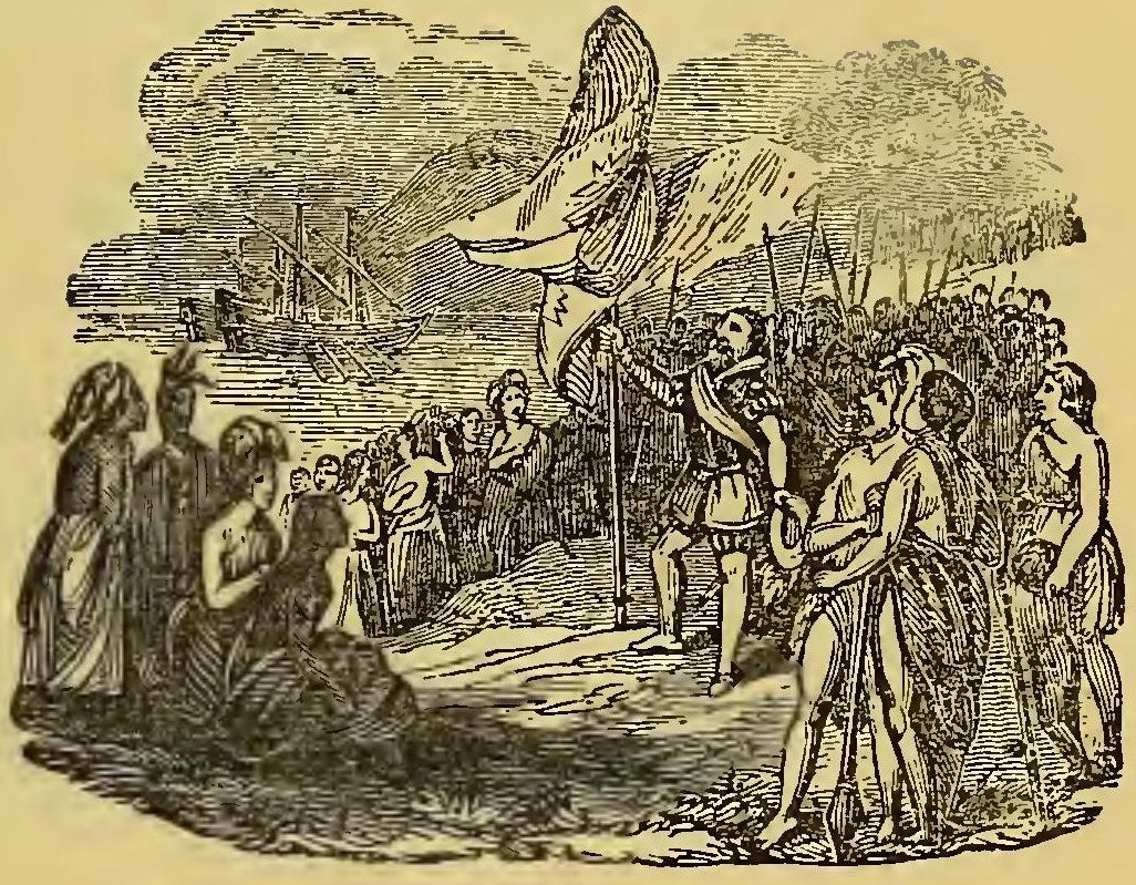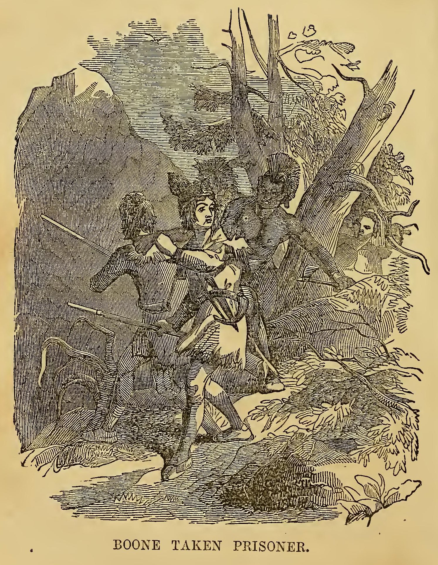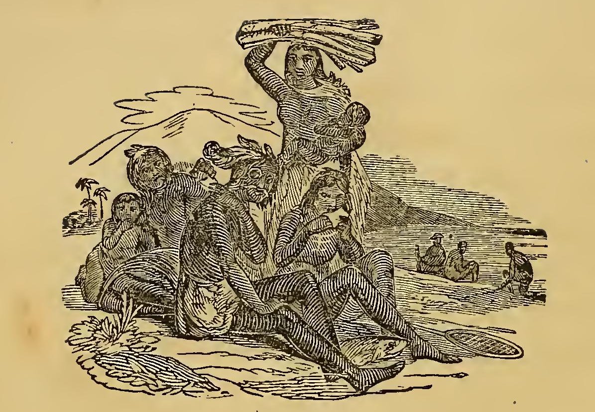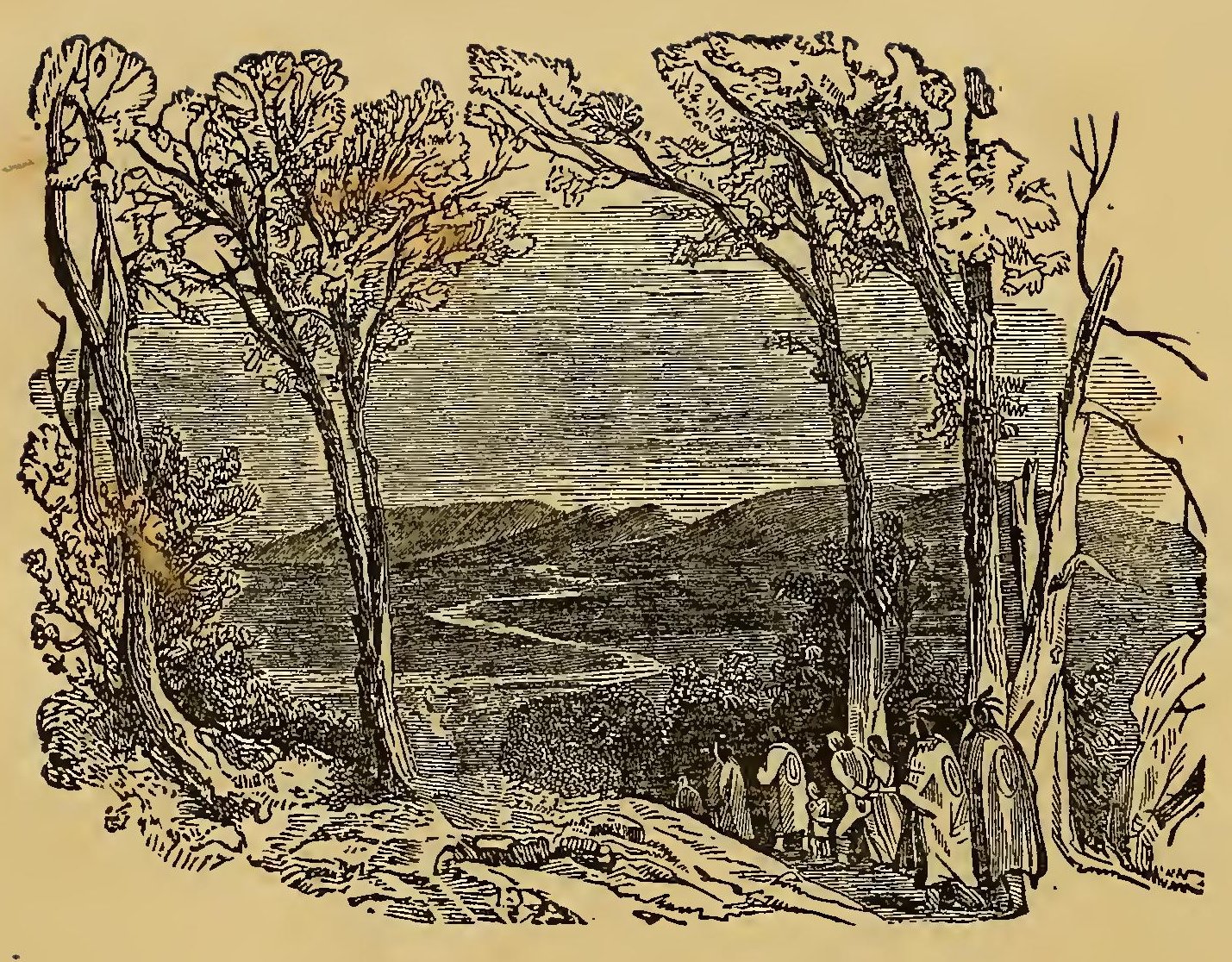 URING the frequent wars between the Indians and the early settlers of New England, the former defeated a party of English soldiers. Their retreat was without order; and a young English officer, in attempting to escape, was pursued by two savages. Finding escape impracticable, and determined to sell his life as dearly as possible, he turned round to face his foes. A violent struggle commenced, and he must have fallen, if an old chief had not thrown himself between the combatants. The red men instantly retired with respect. The old man took the young officer by the hand, dispelled his fears, and led him through the forest to his wigwam, where he treated him with the greatest kindness. He seemed to take pleasure in the youth’s company; he was his constant companion; he taught him his language, customs, and arts. Thoughts of home would sometimes haunt the young Englishman. At these times, Wanou would survey his young friend attentively, and the tears would fill his eyes.