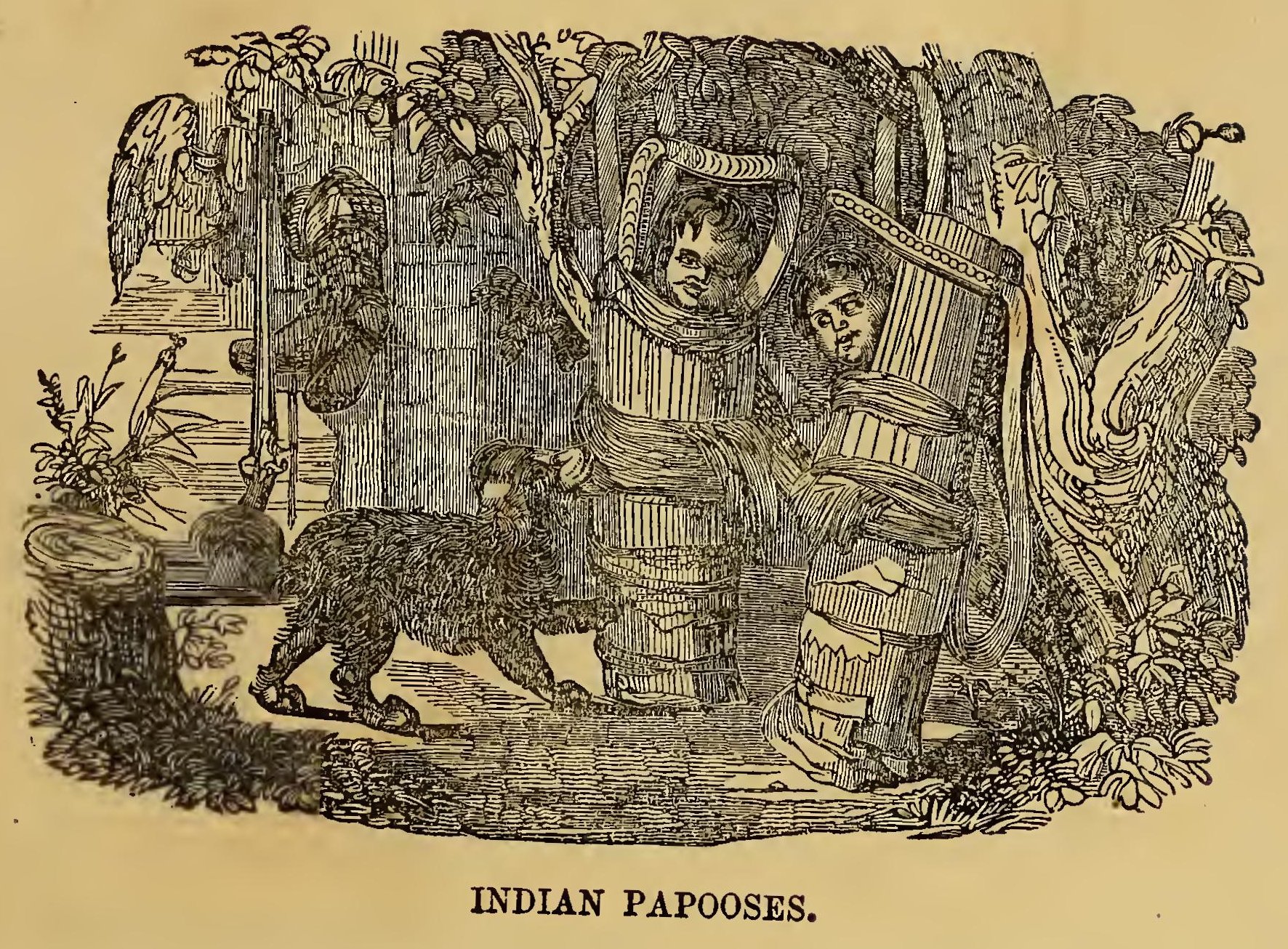 Before the little papoose can walk alone, it is confined in a cradle, which is carried on the mother’s back while she is at her work, or set upright against the wall, or a tree. The mother teaches her children how to make leggins, moccasins, and many other things that have already been described; and if she be a good mother, as many of the squaws are, she is particular in keeping her daughters constantly employed, so that they may have the reputation of being industrious girls, which is a recommendation to the young men to marry them; Corporal punishment is seldom used for the correction of children; but if they commit any fault, it is common for the mother to blacken their faces, and send them out of the lodge. Sometimes they are kept a whole day in this situation, as a punishment for their misconduct. They think that corporal punishment breaks the spirit of the child, and in this they appear to be wiser than their white brethren. Parental love should persuade and guide the bold of spirit, not destroy their courage.