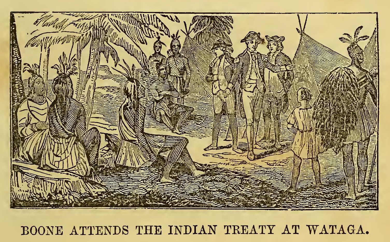 In 1809, Governor Harrison, agreeably to instructions from government, purchased of the Delawares, Miamis, and Shawanees, the country on both sides of the Wabash, and extending sixty miles above Vincennes. Tecumseh demurred to the sale, and Harrison, wishing to conciliate him, appointed the 12th day of August, 1810, as the time, and Vincennes, as the place, for holding a council to settle his claims. In this council, Tecumseh delivered a speech, which eloquently unfolded his views of the aggressions of the white men, and urged that the sale of the land was invalid, because not made with the consent of all the red men living upon it. After Tecumseh had concluded his speech, and was about to seat himself, he observed that no chair had been placed for him. Harrison immediately ordered one, and as the interpreter handed it to him, he said, “Your father requests you to take a chair.”
