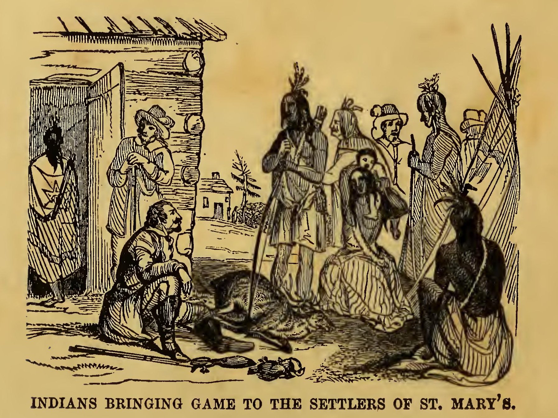 One day, while the farmer was away at the mill, the duty of driving up the cows to milk devolved on the wife, and that thrifty and industrious woman went out in quest of them. Not accustomed to going far from the house, she wandered through the woods, got bewildered, and just before dark sank upon the ground in despair. An Indian hunter soon came along, and guessing her situation, induced her to follow him to his wigwam, where she was kindly fed and lodged for the night by the hunter’s wife.