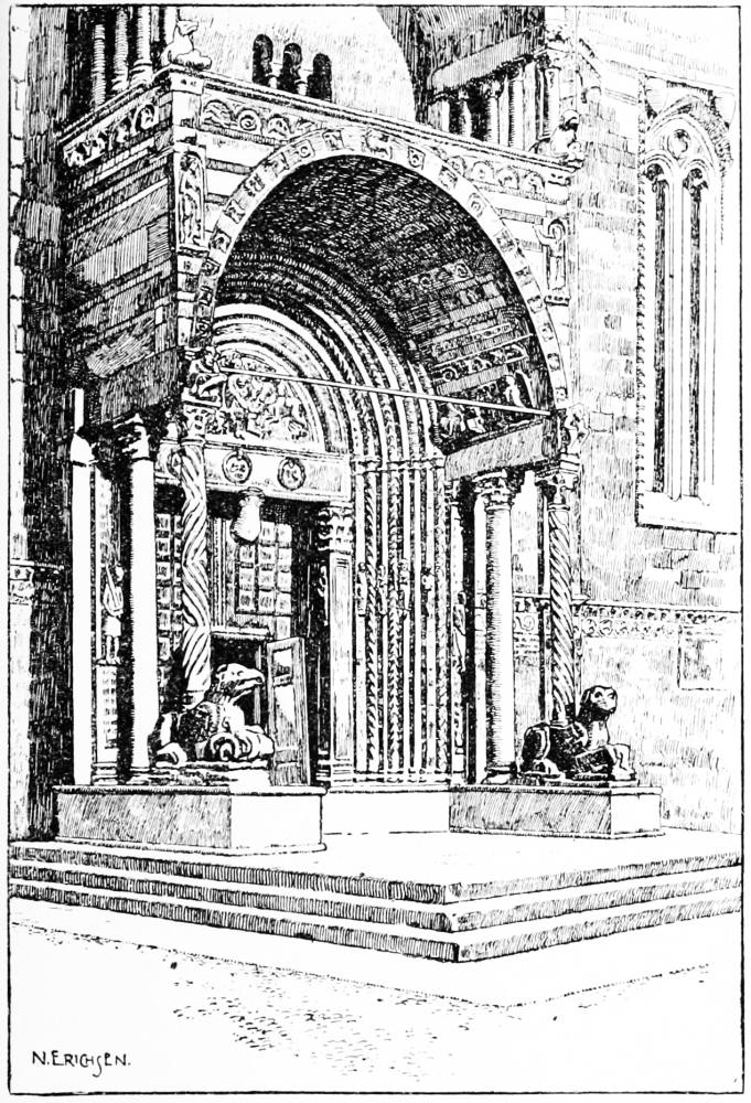 I have drawn much of my knowledge on the Veronese school of painting from Sir A. Henry Layard’s excellent work, Handbook of Painting. The Italian School; based on the Handbook of Kugler (London: Murray, 1887), which was most kindly lent to me by Lady Layard; and to Mr Selwyn Brinton’s The Renaissance in Italian Art, Part II. (London: Simpkin, 1898). My grateful thanks are also due to Prof. Commendatore Carlo Malagola, Head of the State Archives in Venice, for the loan of books and for help as to the means whereby to arrive at much of the information I required. I am also indebted to Cav. Giuseppe Biadego, Bibliotecario of the Biblioteca Comunale of Verona; and to Cav. Dr Riccardo Galli for help during my stay at Verona. Nor must I omit to say a word in praise of the Hôtel de Londres in that city, where comfort and economy are very happily and successfully blended by a most courteous and diligent landlord. My chief thanks though are due to Cav. Pietro Sgulmero, Vice-Bibliotecario of the Library and Vice-Inspector of the Monuments in Verona, who devoted many a spare hour to introducing me to every part of the town, and in imparting to me all he could of the knowledge he possesses in an eminent degree of the history and legends of his native town. My book owes more to him than I am able to express.