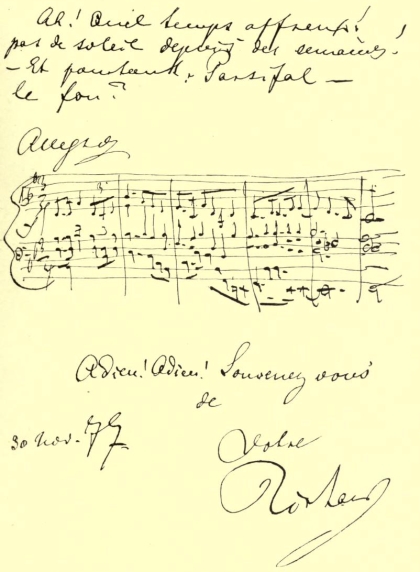 "It is the real meaning of this short instrumental part that so impressed the worthy Pasdeloup that he essayed to perform it at your concerts as an illustration of this unusual music.