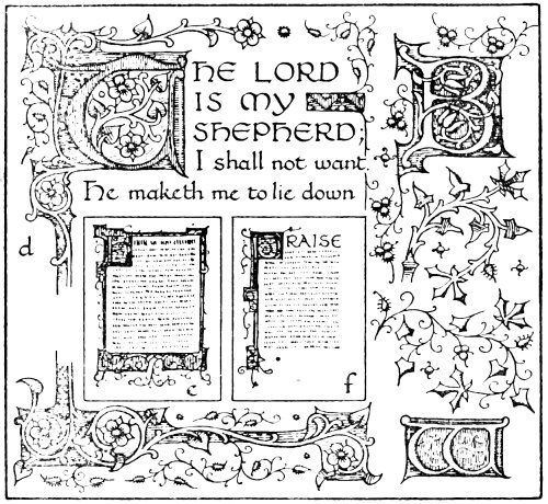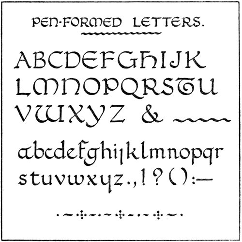 “Perfect illumination,” says Ruskin, in one of his Lectures on Art, “is only writing made lovely;... But to make writing itself beautiful—to make the sweep of the pen lovely—is the true art of illumination.” Certainly it is only when the student is able to produce writing that is attractive in itself, that it is permissible to add decoration to it. The decoration should be the natural outgrowth from the writing.