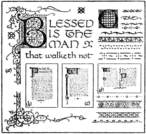 The art of the book began with the illuminated manuscript, the early printed books being based entirely on the manuscripts that preceded them; and the same thing may be said with regard to the application of decoration to printed lettering generally.