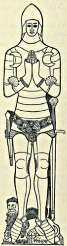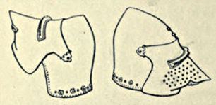 It is with a view to rectifying this obvious requirement that the following pages have been compiled, and it is confidently anticipated that a careful reading and digest of each separate period of armour, supplemented with the study of local brasses, effigies, museums, private collections, &c., will enable the average student to attack the more advanced works upon the subject with equal profit and pleasure. It[Pg xi] is perhaps necessary to caution the student of brasses against many existing cases where the armour shown is not essentially that of the period when the person died, inasmuch as many warriors in their old age requested that the armour delineated upon their monumental slabs should be that in which they achieved renown in youth or manhood. In other examples the brass was not executed until some time after the person represented had deceased, and details had undergone change in the interim; while cases are not unknown where the brass of one person has been taken to record the demise of another, perhaps many years later. A flagrant example of this may be cited in the brass of Peter Rede, d. 1577, in St. Peter’s, Mancroft, Norwich, who is represented in complete plate of the years 1460 or 1470, with visored salade, &c. Occasionally we find the artist exercising his powers of recollection with startling results, as in the case of the Wodehouse brass in Kimberley Church, Norfolk, 1465, but probably executed sixty years later. The knight delineated has a skirt of mail of 1490 with three fluted tuilles, very high pike-guards, a camail of 1405 or earlier, sabbatons of 1500, and a breastplate with placcate of 1470. Fortunately such vagaries are so apparent that the observer is placed upon his guard at once.