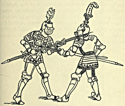 The average Englishman is probably more unacquainted with arms and armour than any other technical subject. Beyond a general idea that the Crusaders fought in mail, and the Wars of the Roses were waged by warriors clad in plate, his knowledge does not extend, and he consequently witnesses many startling incongruities upon the stage of a theatre, or the arena of a pageant, with the most profound indifference. He will perceive Richard III. in a camail and[Pg xii] Ivanhoe in a salade with the utmost complacency. The pity of it is that those who are responsible for the historical inaccuracies should be so ignorant, for no effort ought to be spared in endeavouring to educate the nation, and especially the youth of it, in the fundamental principles of rigid historical truthfulness. In our theatres recently we have witnessed Bolingbroke in a fifteenth century tabard, a waist-belt, and round-toed sabbatons, with the Duke of Norfolk in an almost equally grotesque parody of the Camail and Jupon Period; Pistol with a basket-hilted rapier; Henry V. in a camail, late fifteenth century gauntlets, twentieth century boots, and vambraces covering parts of his coudières. Upon the arena knights of Richard II.’s period have appeared in full plate armour of 1470; at Queen Eleanor’s funeral without ailettes; while bear’s-paw sabbatons have figured conspicuously in many scenes previous to 1480. These are elementary details which even a cursory knowledge of military equipment could avoid, but in the illustrations of historical scenes in books and magazines equal ignorance prevails, and a knight in pure mail and a surcoat, making love to a maiden in a reticulated head-dress seated under a two-centred Tudor archway, is only an example of the incongruities which almost every day insult the intelligence and offend the eyesight of the educated reader. Unfortunately many illustrators go to the works of Sir Walter Scott for details of mediæval military equipment, and are thereby led hopelessly astray.