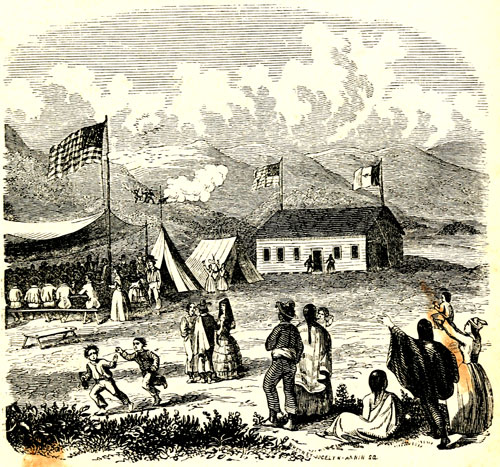 Then the Declaration of Independence, the daily newspapers, the coins that are in circulation for money, the previous history of the institution, if it has any, and everything else that may seem proper or interesting to the occasion, is placed in the hole. The most distinguished person present takes a trowel and some mortar and[23] closes it up. On this the wall of the building is laid.