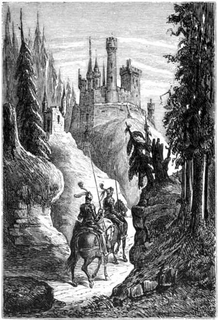 En tales términos refirió Riciardeto sus aventuras á Rugiero, haciendo con este relato menos pesada su nocturna marcha, mientras subian por un monte rodeado de peñascos y precipicios. Un escarpado sendero, angosto y lleno de rocas, les abria camino con fatigosa llave. En la cima de aquel monte se asentaba el castillo de Agrismonte del que era gobernador Aldigiero de Claramonte: este era hijo bastardo de Buovo y hermano de Malagigo y de Viviano, aunque algunos, con temerario aserto, han asegurado que era hijo legítimo de Gerardo. Pero fuese lo que quiera, lo cierto es que era valeroso, prudente, liberal, cortés y humano, y guardaba dia y noche cuidadosamente el castillo fraternal. Aldigiero, que amaba en extremo á su primo Riciardeto, dispensó á Rugiero la cortés acogida que[21] le era debida, y Rugiero le correspondió del mismo modo por respetos á su jóven compañero. Sin embargo, no salió á su encuentro tan alegremente como solia, sino que los acogió con triste semblante, por haber recibido aquel dia una noticia que anubló la ordinaria serenidad de su corazon y de su rostro. En vez de saludar á Riciardeto, le dijo: