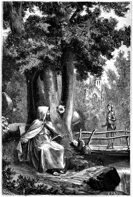»Mi hermana caminó con tal rapidez, que aquel mismo dia llegó á Montalban. Nuestra madre y todos nosotros la recibimos poseidos del mayor júbilo; porque careciendo de noticias suyas estábamos con el mayor cuidado por ella y llegamos á temer que hubiese muerto. Al quitarse el casco, reparamos en que habian desaparecido las hermosas trenzas que hasta entonces rodeaban su cabeza; examinamos tambien maravillados la peregrina sobrevesta que llevaba, y entonces ella nos refirió desde el principio al fin todo cuanto acabo de narraros, diciéndonos cómo fué herida en el bosque; cómo se vió precisada á permitir que le cortaran los cabellos para curar su herida; cómo la sorprendió, mientras estaba durmiendo á la orilla de un arroyo, una linda cazadora, á quien dejó prendada su falsa apariencia, y cómo se retiró con ella á un sitio apartado. Nos habló tambien de la afliccion de Flor-de-Espina, que nos conmovió sobremanera, y por último, nos participó su permanencia en el castillo, y todo cuanto hizo hasta regresar á nuestro lado.