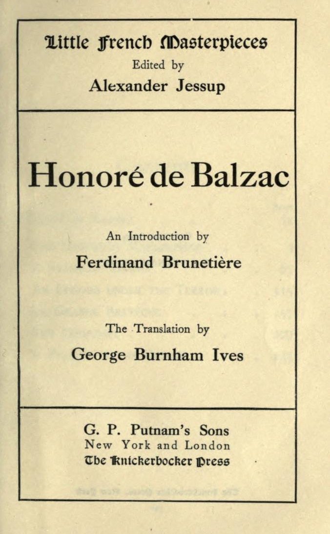 [1] According to Lovenjoul, A Seashore Drama was first published in the fourth edition of the Philosophic Studies, in 1835. But this fact in no wise lessens the force of M. Brunetière's argument.—Ed.