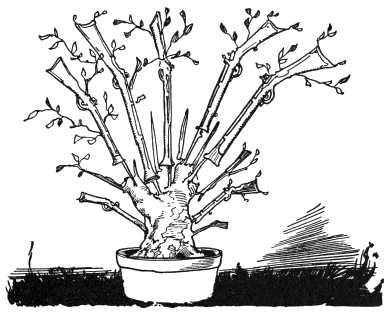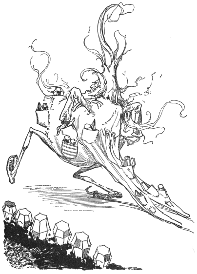 Finding Jo Candy so obstinate, Queen Ann let him have his own way and continued her journey to the house of the eighteenth and last man in Oogaboo, who was a young fellow named Jo Files. This Files had twelve trees which bore steel files of various sorts; but also he had nine book-trees, on which grew a choice selection of story-books. In case you have never seen books growing upon trees, I will explain that those in Jo Files’ orchard were enclosed in broad green husks which, when fully ripe, turned to a deep red color. Then the books were picked and husked and were ready to read. If they were picked too soon, the stories were found to be confused and uninteresting and the spelling bad. However, if allowed to ripen perfectly, the stories were fine reading and the spelling and grammar excellent.