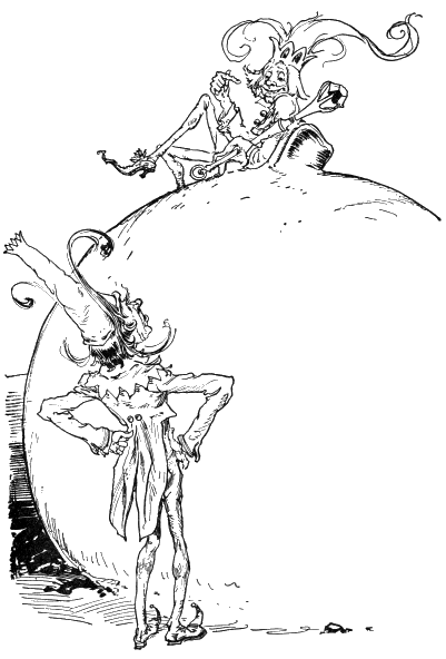 “Excuse me, please,” said Jo Cone. “I am a bad fighter. My good wife conquered me years ago, for she can fight better than I. Take her, Your Majesty, instead of me, and I’ll bless you for the favor.”