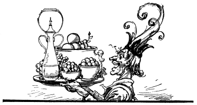 So he consented, although sorely against his will, and the Queen walked on to the next cottage. Here lived Jo Cone, so called because the trees in his orchard bore crops of excellent ice-cream cones.
