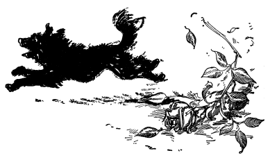 “Goodness me!” exclaimed Dorothy. “I never s’pected Toto was fooling me all this time.” Then she drew a small silver whistle from her pocket and blew a shrill note upon it. A moment later there was a sound of scurrying footsteps, and a shaggy black dog came running up the path.