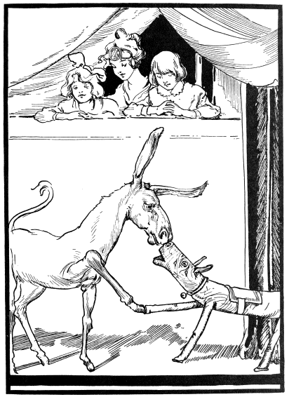 “All right,” said the Sawhorse, quite cheerfully; “shake hoofs, friend Mule.”