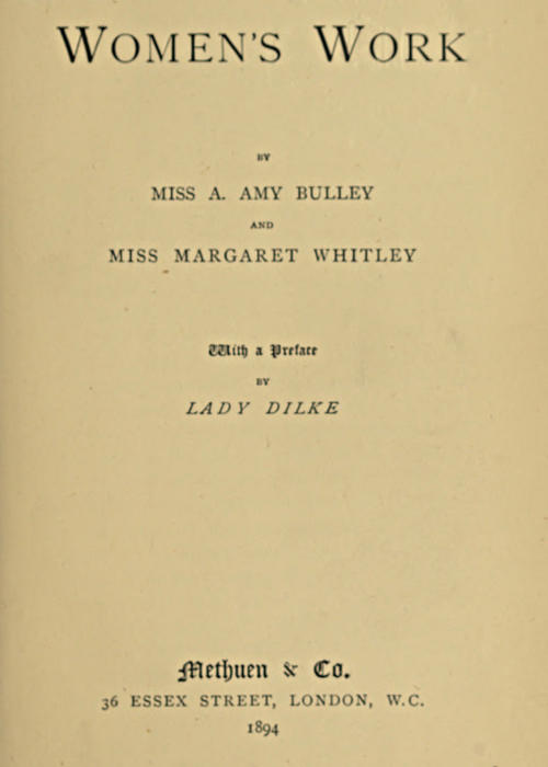 The writers of the present volume have a purely practical object in view. They have no desire to discuss, theoretically, the duties, rights, and responsibilities of women. They consider that it would be unwise to give prominence to considerations affecting the political or social position of women, in a work dealing specially with their industrial situation.