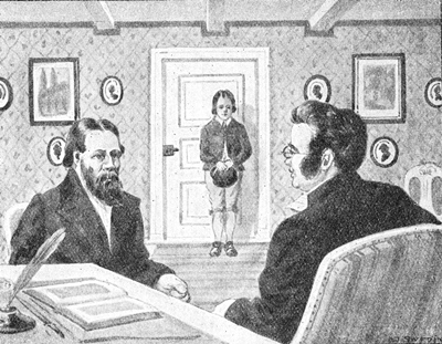 De bägge piltarna klevo fram, så gott de kunde i trängseln och ställde sig frimodigt framför prosten.