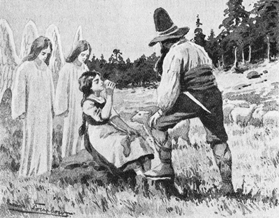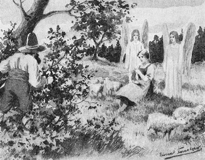 Ofta böjde han sina knän därute i ensamheten och omtalade för Gud sitt hjärtas önskan. Under denna[Pg 16] sommar, då Johan gick i vall med fåren, lärde han att bedja, såsom han aldrig förut gjort. Han kände, att han talade till en, som var honom nära och hörde hans bön.