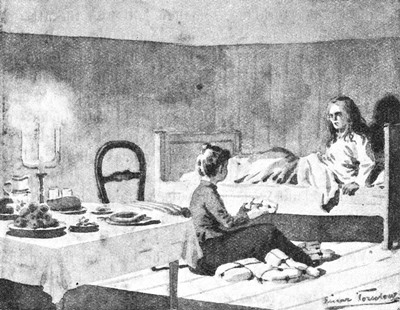 Äntligen var det slut med läsningen och förhöret i katekesen. Prosten lade ifrån sig böckerna. Men då fick hans skarpa öga syn på ett par små pysar, som höllo till borta i spiselvrån. Med stora vakna blå ögon hade de uppmärksamt följt med under hela tiden.