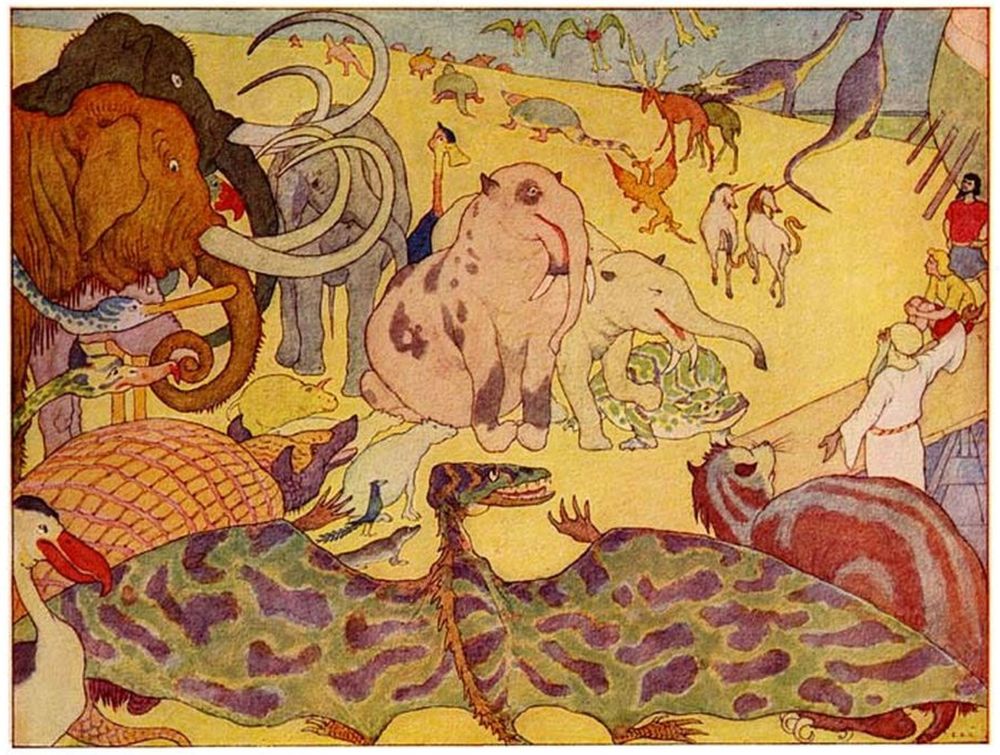 But the mammoth and the mastodon, and the dinotherium, the palæotherium, and the anoptherium, and the pterodactyl, and the archæopteryx,—and a host of other strange beasts and birds with long Latin names,—refused to go in at all, in spite of Noah’s warnings.