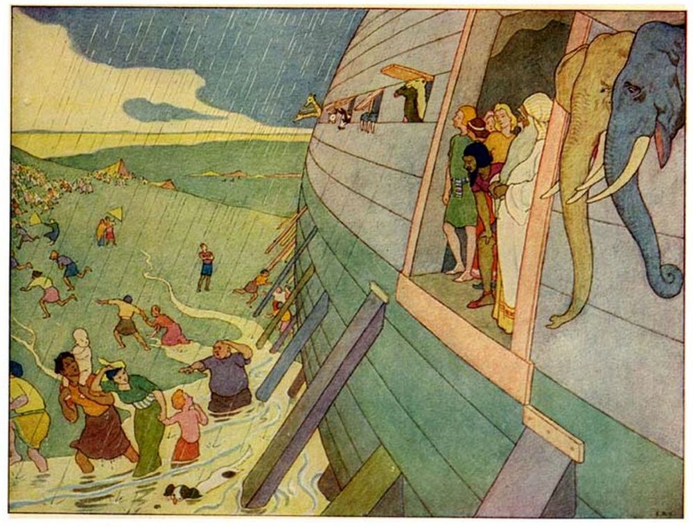 But Noah felt only sorrow for his stubborn neighbors, for he knew that much more rain would fall.[16]