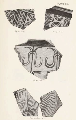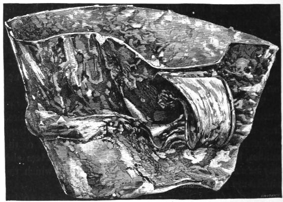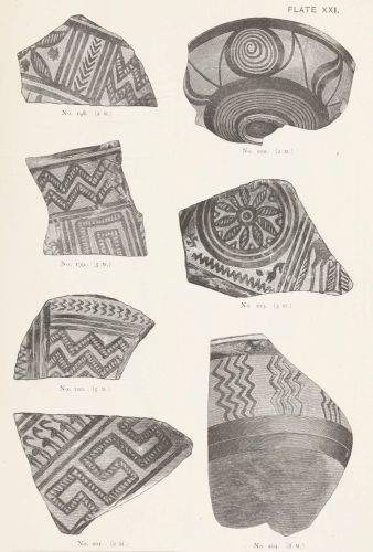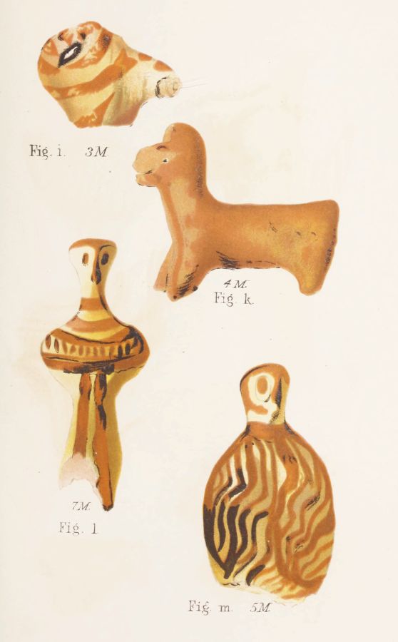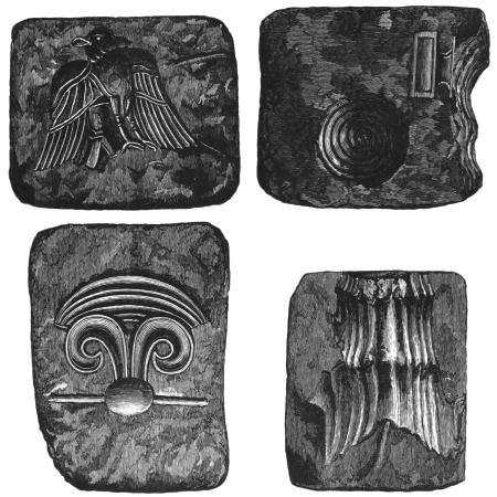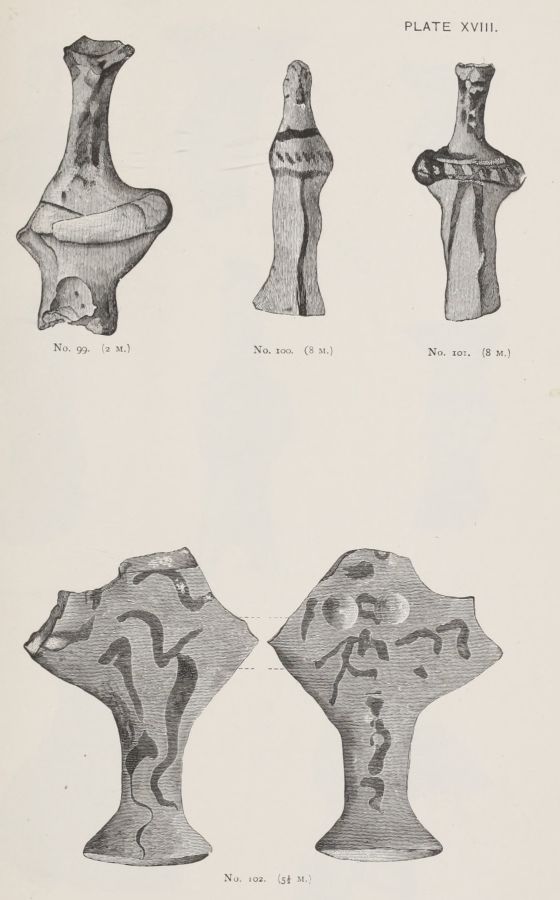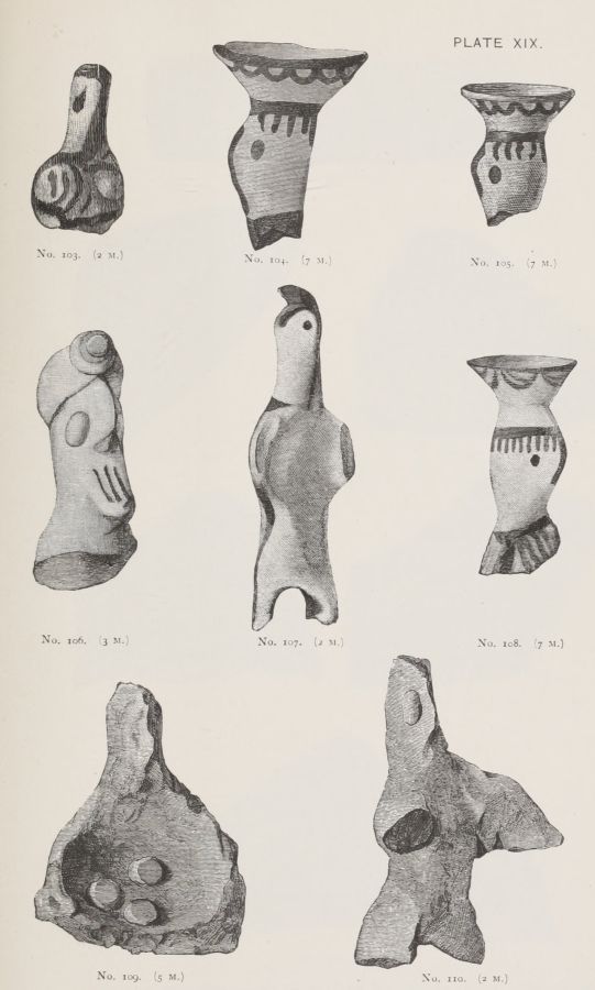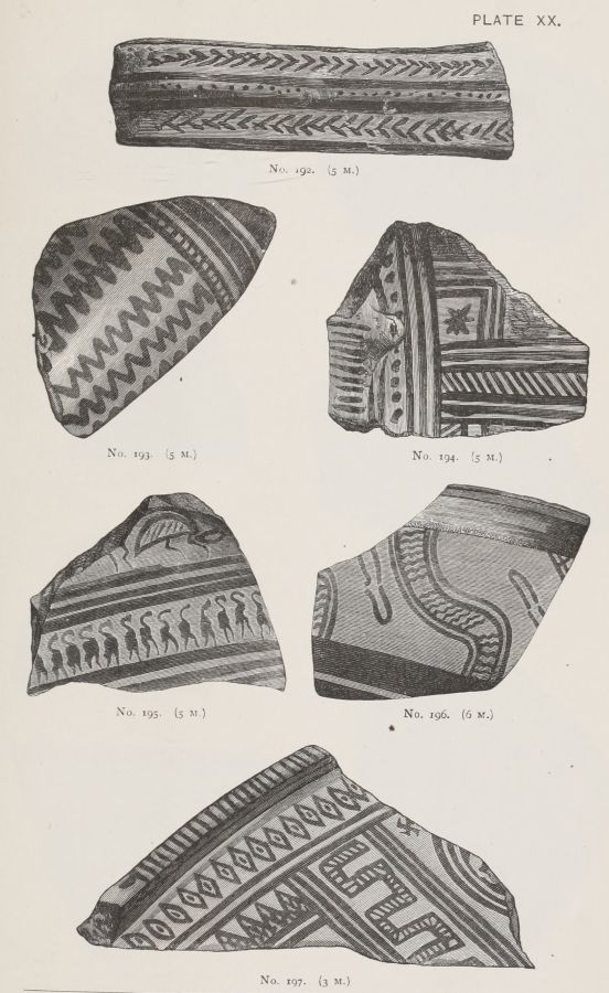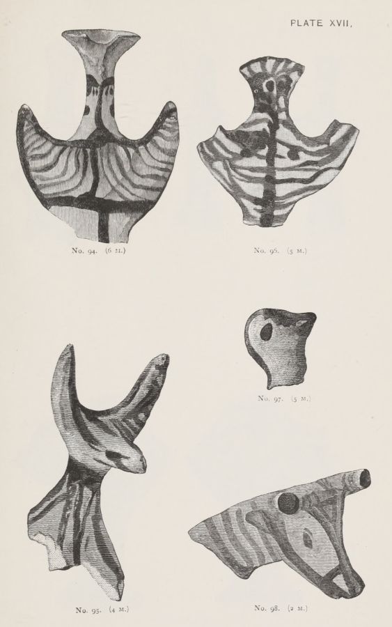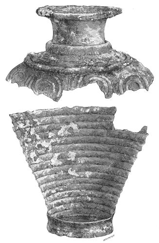 4. Passing from architectural to moveable objects, I observe that Dr. Schliemann found both knives and keys of iron in Mycenæ, but that from their form he assigns them to a later and strictly historic period. Old Mycenæ, therefore, in accordance with Hissarlik, has afforded us, up to the present time, no remains of this metal. In the Poems it is freely mentioned, but as a rare and valuable substance, used where great hardness was required, and for objects comparatively small and portable; except, indeed, in the case of the Gates of Tartaros (Il. VIII 15), where the Poet could dispose of as much material as he pleased. The aggregate quantity, then, was small; and the instruments were likely to be carried away on the abandonment or destruction of a city. Its absence may therefore be accounted for, in part by its value, but also, and more[xi] especially, because it so readily corrodes.[3] Therefore, although we cannot here establish a positive correspondence, neither have we any occasion to admit a discrepancy.