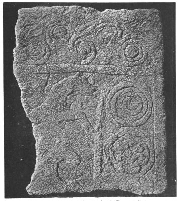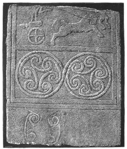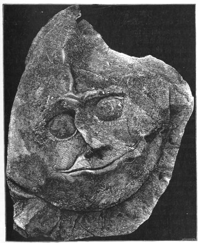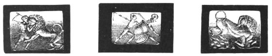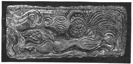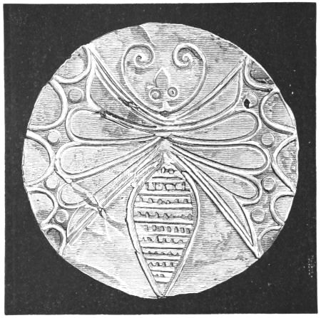4. In the upper region, or what we might call the sky of the picture, are presented to us, apparently in very rough outline, the sun and a thinly horned moon.[10] Below[xxiii] them is an uneven band, forming rudely an arc of a circle. This, I am led to suppose, is an indication of mother-earth, with its uneven surface of land and its rippling sea, in the proper place, beneath the sun and moon. If this be so, it greatly confirms the conjecture of Mr. Newton respecting the six objects on the rim of the picture to the right. He asks whether these can be the teirea (Il. XVIII. 485), the stars of heaven, which are described by Homer as placed upon the Shield of Achilles, together with the sun, moon, sky, earth, and sea. Schliemann assigns to this sestetto heads and eyes: Mr. Newton says they are thought to be heads of lions. That they should be things animate is not, I imagine, in conflict with the conjecture that they may be stars. The spirit of Hellenism transmuted the older Nature-worship by impersonations, of which we have an Homeric example in the astral Orion (Il. XVIII. 486, Od. XI. 572). Should these conjectures be confirmed, the matter will be of peculiar interest: for we shall then have before us, in actual collocation, the very objects, which people the first compartment of the god-wrought Shield of Achilles: the earth (of land and sea), sun, moon, and all the stars of heaven. The ouranos or heaven itself, which the Poet also includes, is here in all likelihood represented by the curvature of the picture.