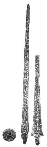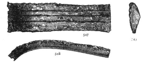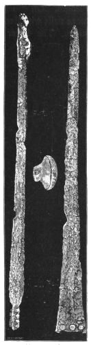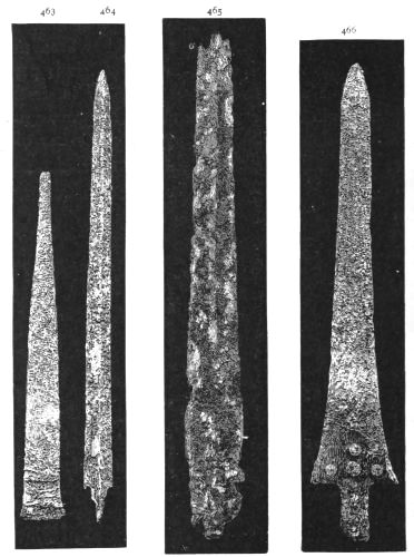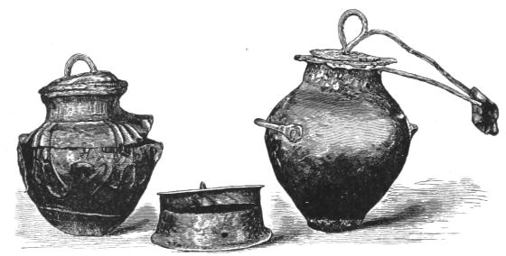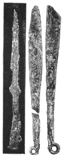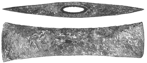 1. As the first of these I take the free use of copper for large utensils (pp. 274-277). We have also the analysis supplied by Dr. Percy of a sword and a vase-handle of bronze (pp. 372-5). In my judgment, we have no sign whatever from the Poems of the fusion of metals together as a domestic practice; while we have abundant proof of the importation and foreign production of works of art and implements in bronze. This vase, then, may probably have been foreign. The same is likely with respect to the sword. We know that swords were exported and imported between different countries. Thrace was a seat of manufacture both for fine works of art (Il. XXIV. 234) and for weapons (Il. XXIII. 808): and we find a sword, "beautiful and long," from Thrace, in the possession of the Trojan Prince Helenos (Il. XIII. 577). Moreover, copper was an abundant metal, tin a rare one. Bronze weapons, therefore, must have been expensive. And the swords of bronze found in the tombs, in conjunction with all other costly objects, are just where we should have expected them. Even so at Hissarlik, two battle-axes found in the Treasure, and presumably belonging therefore to distinguished persons, were of bronze.[8] But axes made of pure copper may be seen in the Museum of the Irish Academy; and the great layer of copper-scoriæ at Hissarlik, without any tin, seems effectually to show that copper was the staple metal of the heroic period, and that our archæologists will have to insert a copper age in their lists, between their age of stone and their age of bronze. If weapons of copper were to be discovered in the tombs at Mycenæ, no circumstance could more enhance the proofs afforded by the Poems of the general use of copper;[xx] because the weapons in the tombs are weapons of the persons most likely to be able to command the use of bronze. I hope that the analysis, already begun, will be applied to a much larger number of objects. In the meantime, as to large utensils, I find the discoveries already in close correspondence with the Poems.